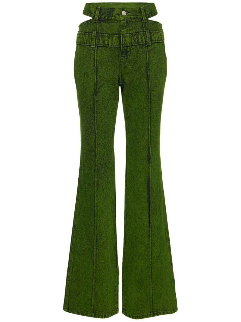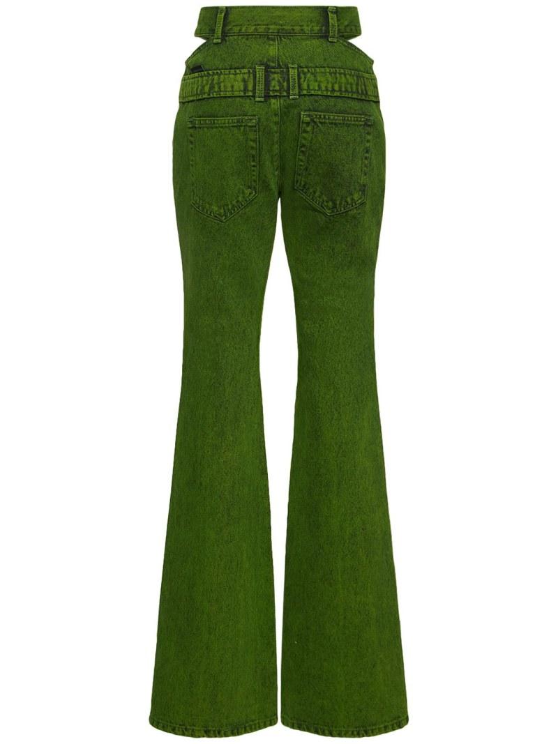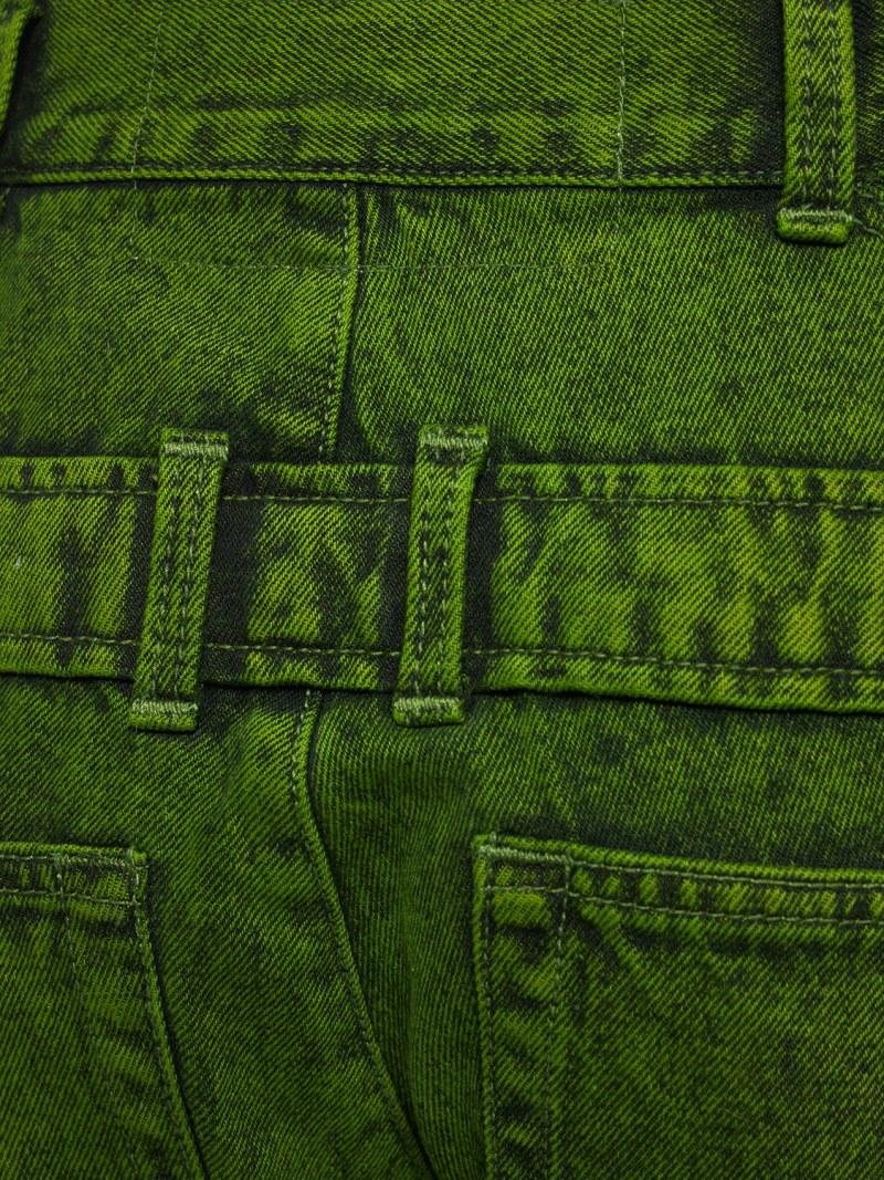 Joean双腰头棉质牛仔裤 - 绿色 - 女士 - Andersson Bell - 正面纽扣和隐藏式拉链开合.