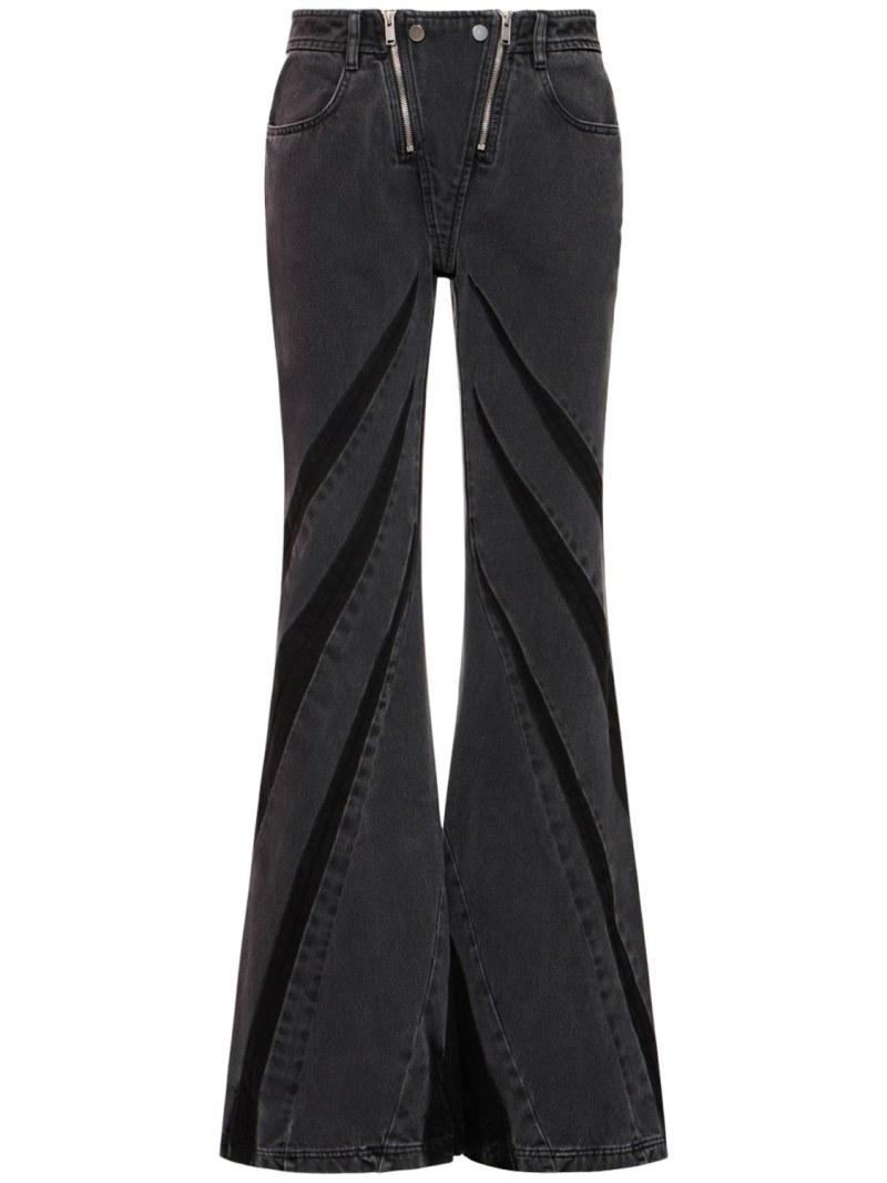 低腰拉链细节喇叭牛仔裤 - 黑色 - 女士 - Dion Lee - 正面双拉链.