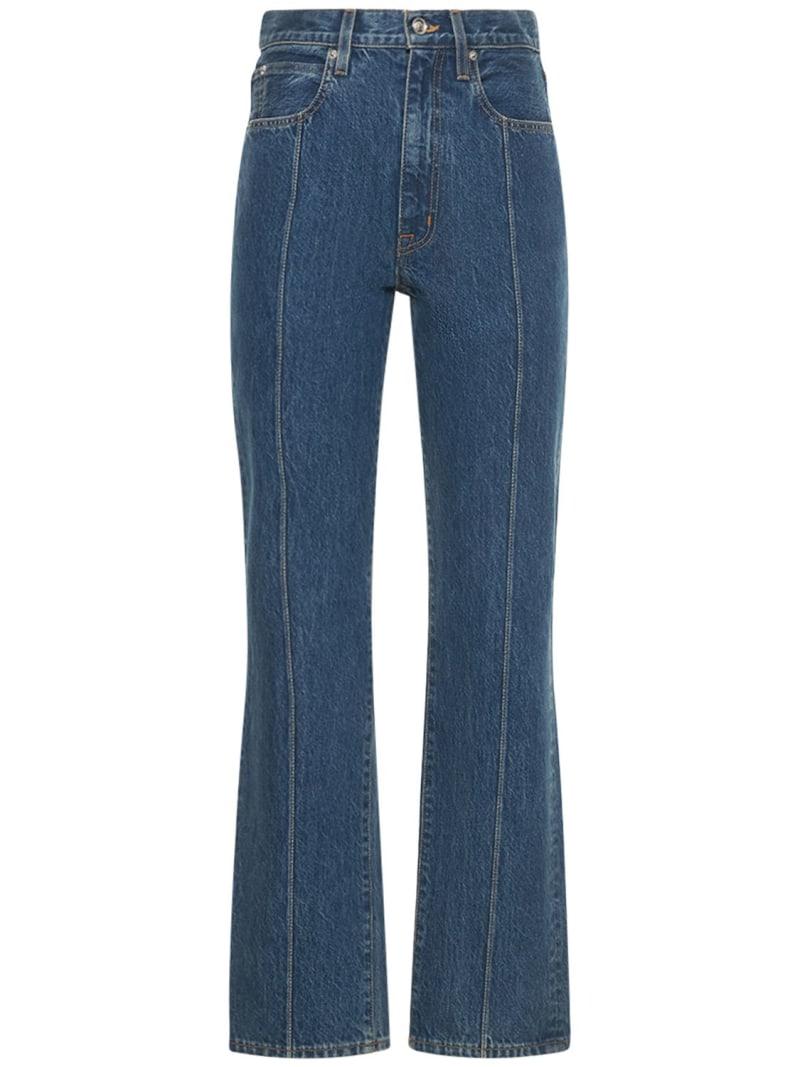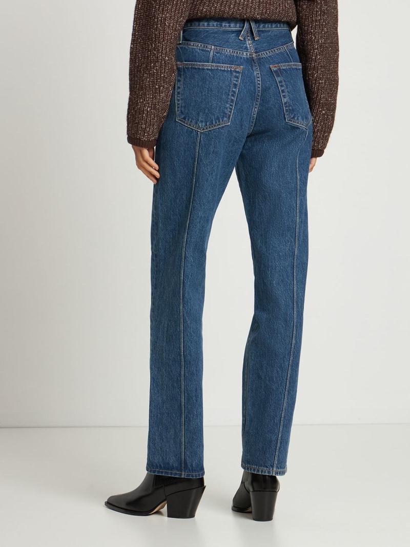 London直筒牛仔裤 - 蓝色 - 女士 - Slvrlake - 正面纽扣和隐藏式拉链开合.