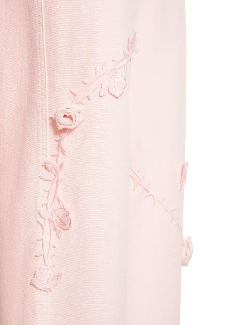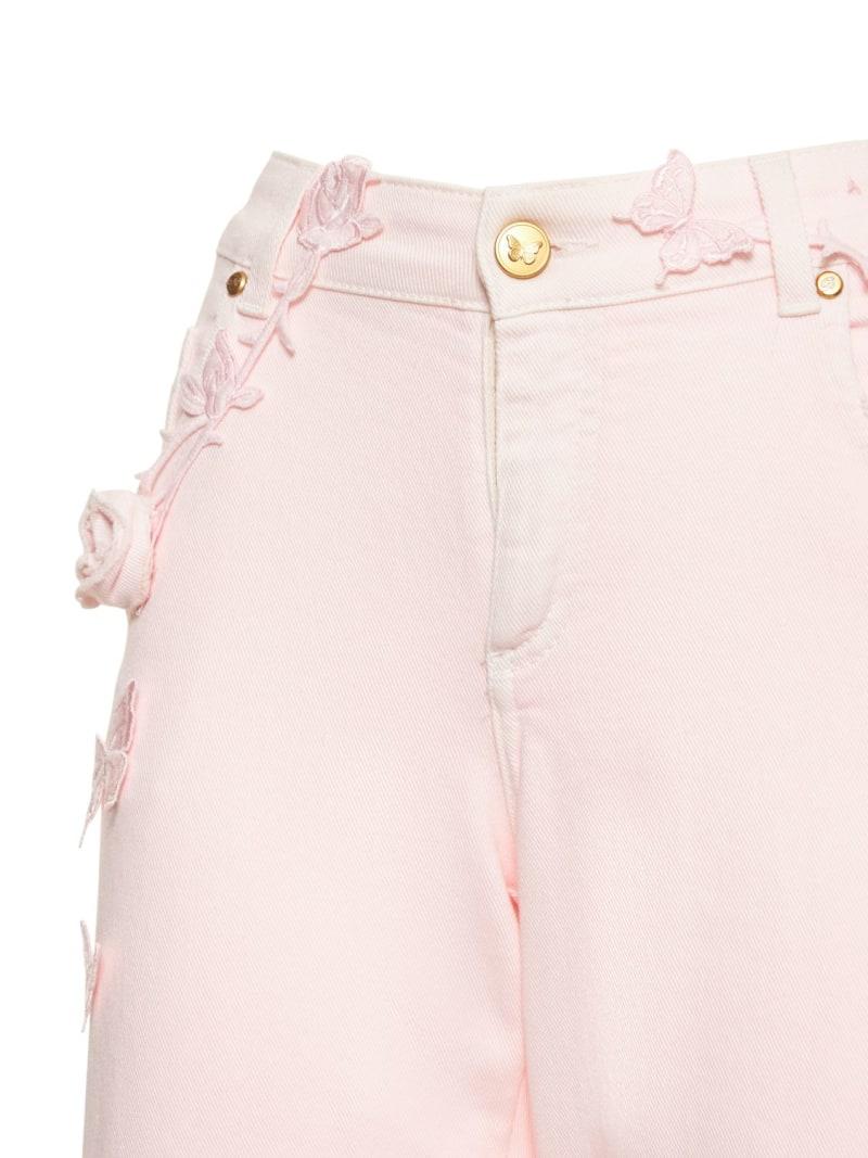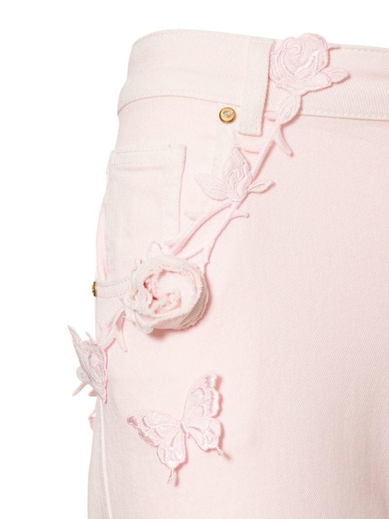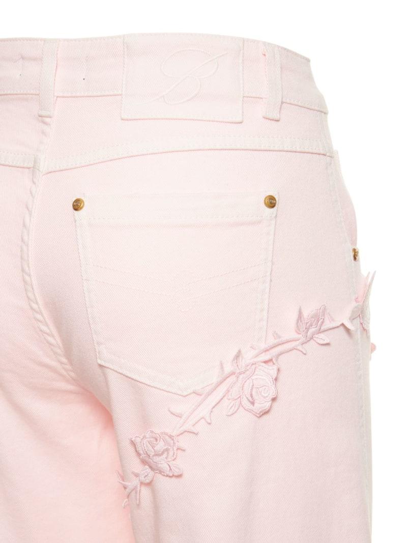 玫瑰和荆棘刺绣阔腿牛仔裤 - 粉色 - 女士 - Blumarine - 正面纽扣和隐藏式拉链开合.