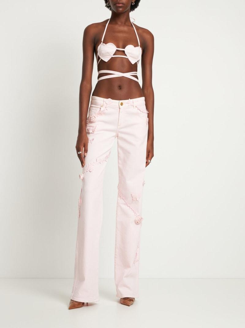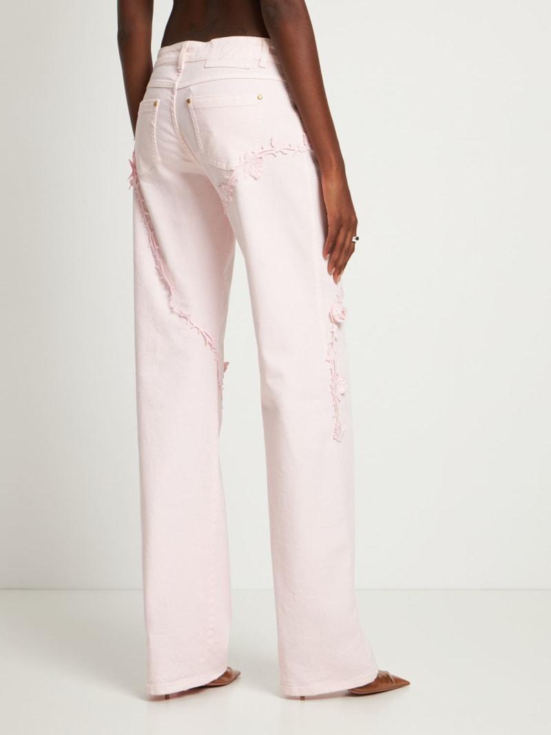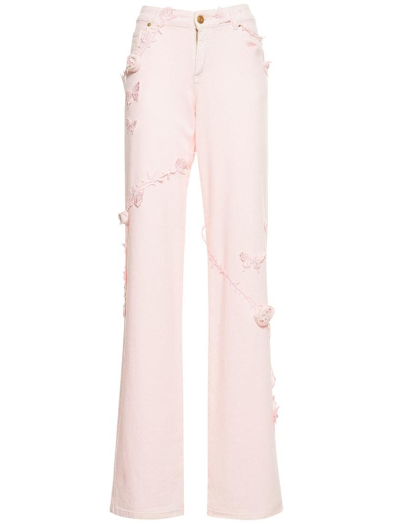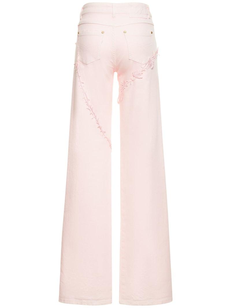 玫瑰和荆棘刺绣阔腿牛仔裤 - 粉色 - 女士 - Blumarine - 正面纽扣和隐藏式拉链开合.
