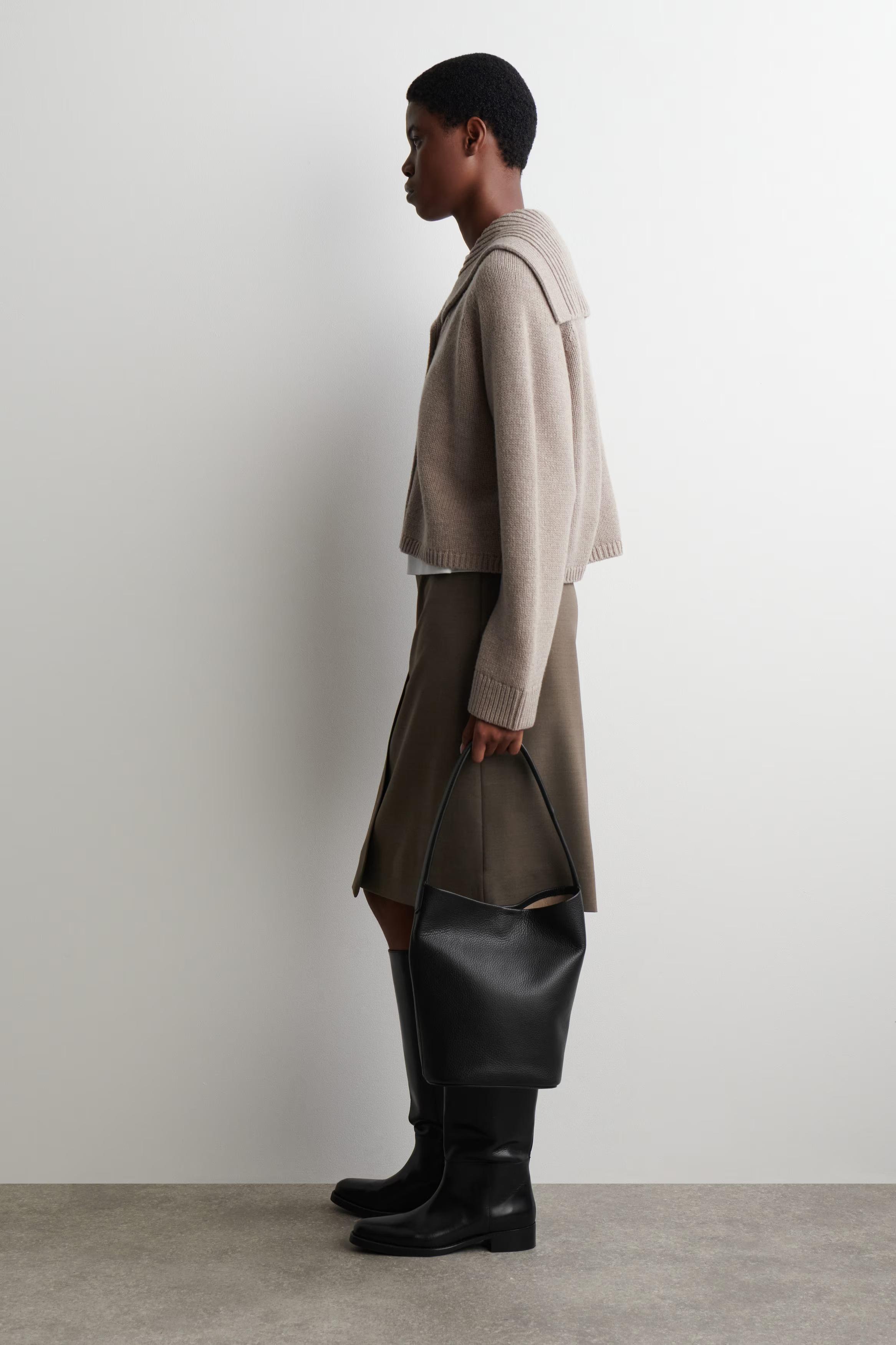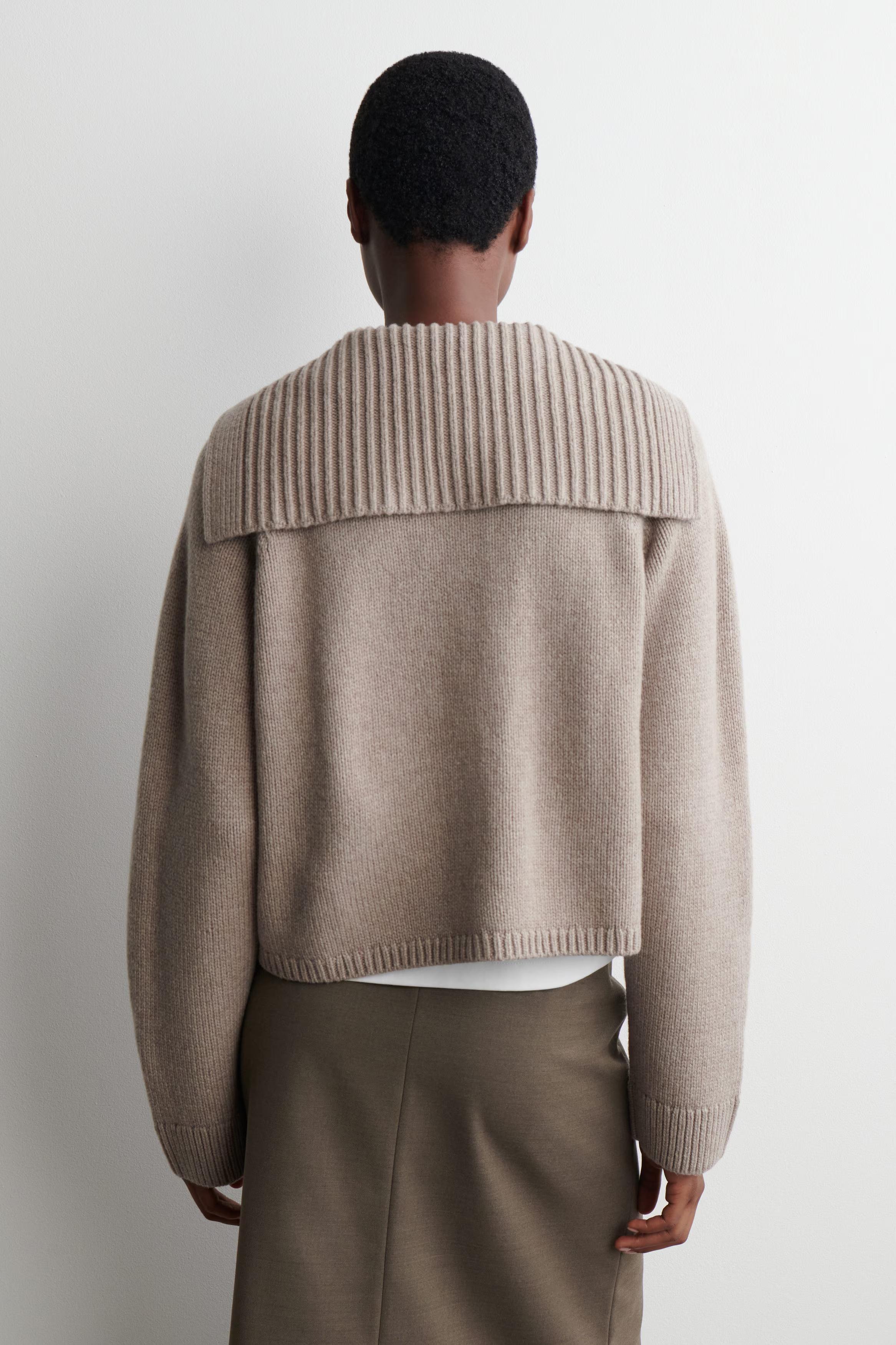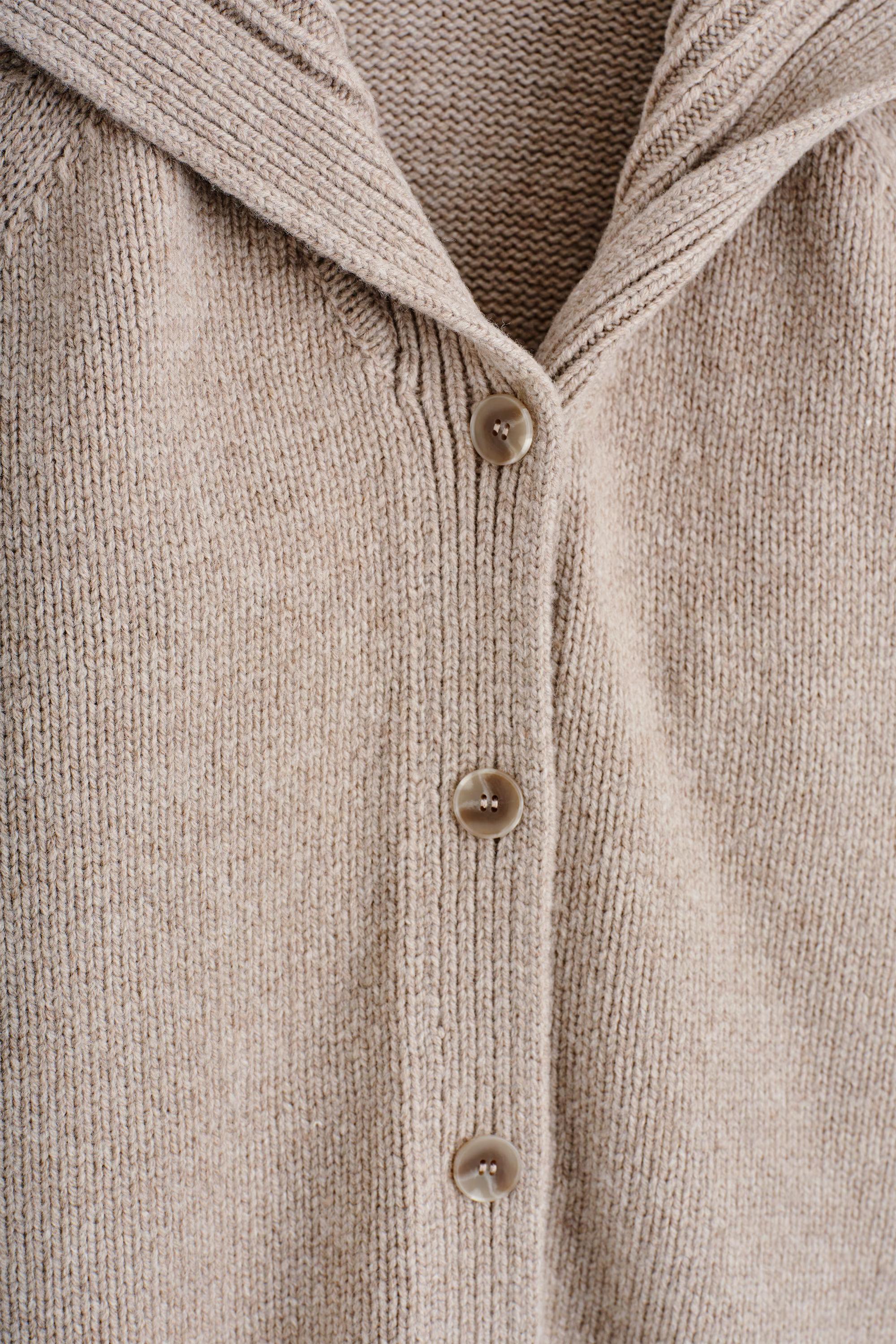 Cut in a boxy shape, this boxy cardigan is knitted from pure RWS wool that's equal parts soft and warm. It's designed with a unique sailor collar that folds over the shoulders and comes in a m\u0026eacute;lange-grey tone that will style effortlessly with the other pieces in your wardrobe.\u0026nbsp;Regular fitButton closureThis product contains Responsible Wool Standard TE-00047206 (RWS) wool fibre from farms certified to animal welfare and land-management requirements\u0026nbsp;\u0026nbsp;Shell: 100% RWS Wool. Excluding trims / Machine wash\u0026nbsp;Length of size S is 51cm / Model wears a size S
