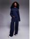 ASOS DESIGN co-ord interlock cinch waist long sleeve top in navy