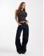COLLUSION one shoulder ruffle top in black pinstripe