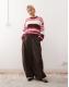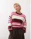 Noisy May chunky open knit jumper in white & pink stripe
