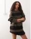 Weekday boxy fit distressed jumper with fringe sleeve detail in dark mole & black stripe