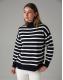 French Connection Oversized high neck cosy striped long sleeve jumper in navy