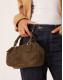 ASOS DESIGN faux suede mini bowler bag with detachable cross body strap in khaki