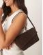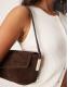 ASOS DESIGN suede asymmetric flap shoulder bag with strap hardware in chocolate