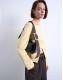 Topshop Scarlett real leather suede shoulder bag with contrast strap in black and chocolate