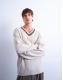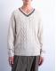 This jumper is crafted from a mid-weight knit in a cable knit finish. Complete with a V-neck and drop shoulders, this style features contrast stitch detailing around the neck. It is cut to a relaxed fit.