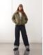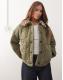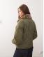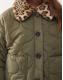 Noisy May faux fur leopard collar detail quilted coat in khaki
