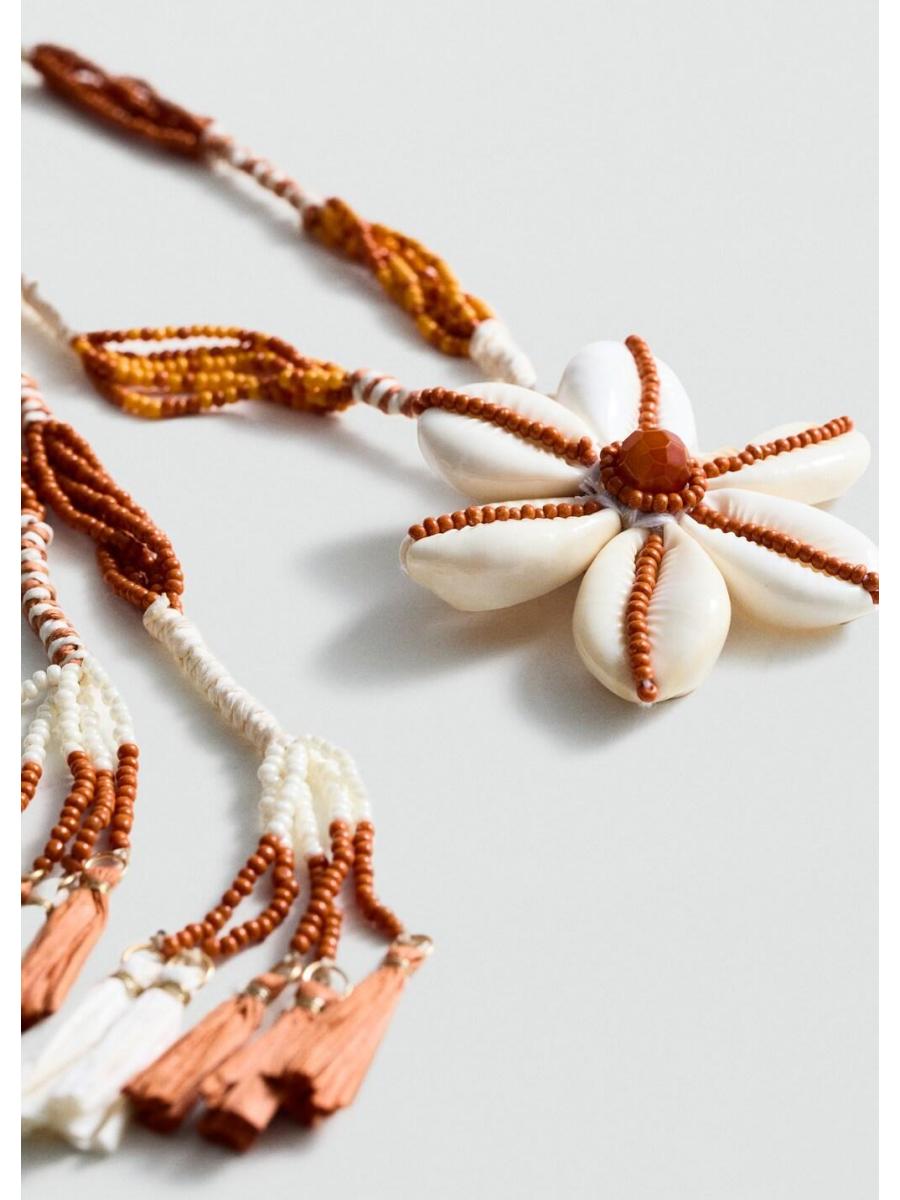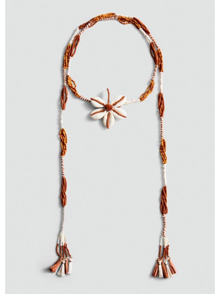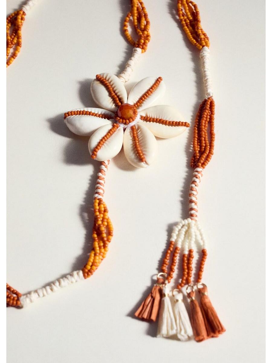 Diseño largo. Diseño doble vuelta. Abalorios decorativos. Adorno de conchas. Detalle de flecos