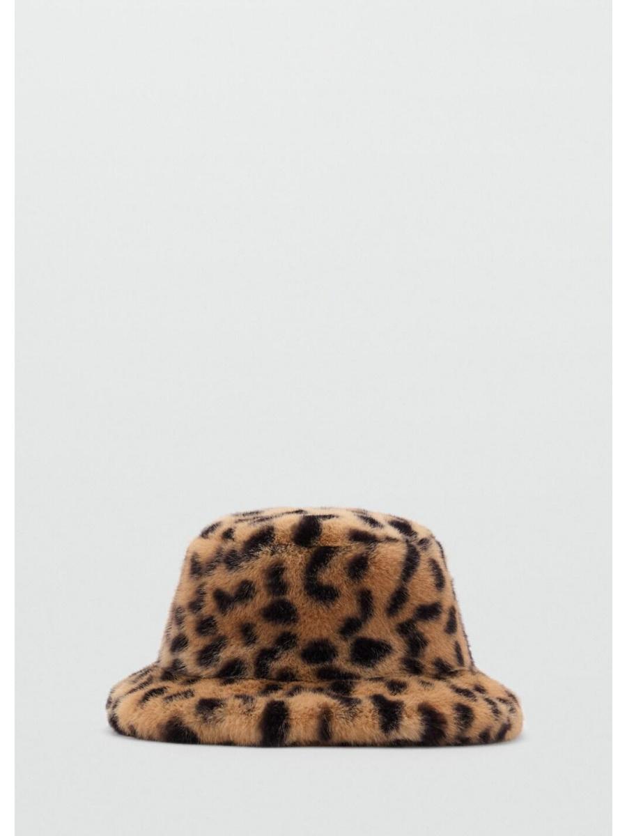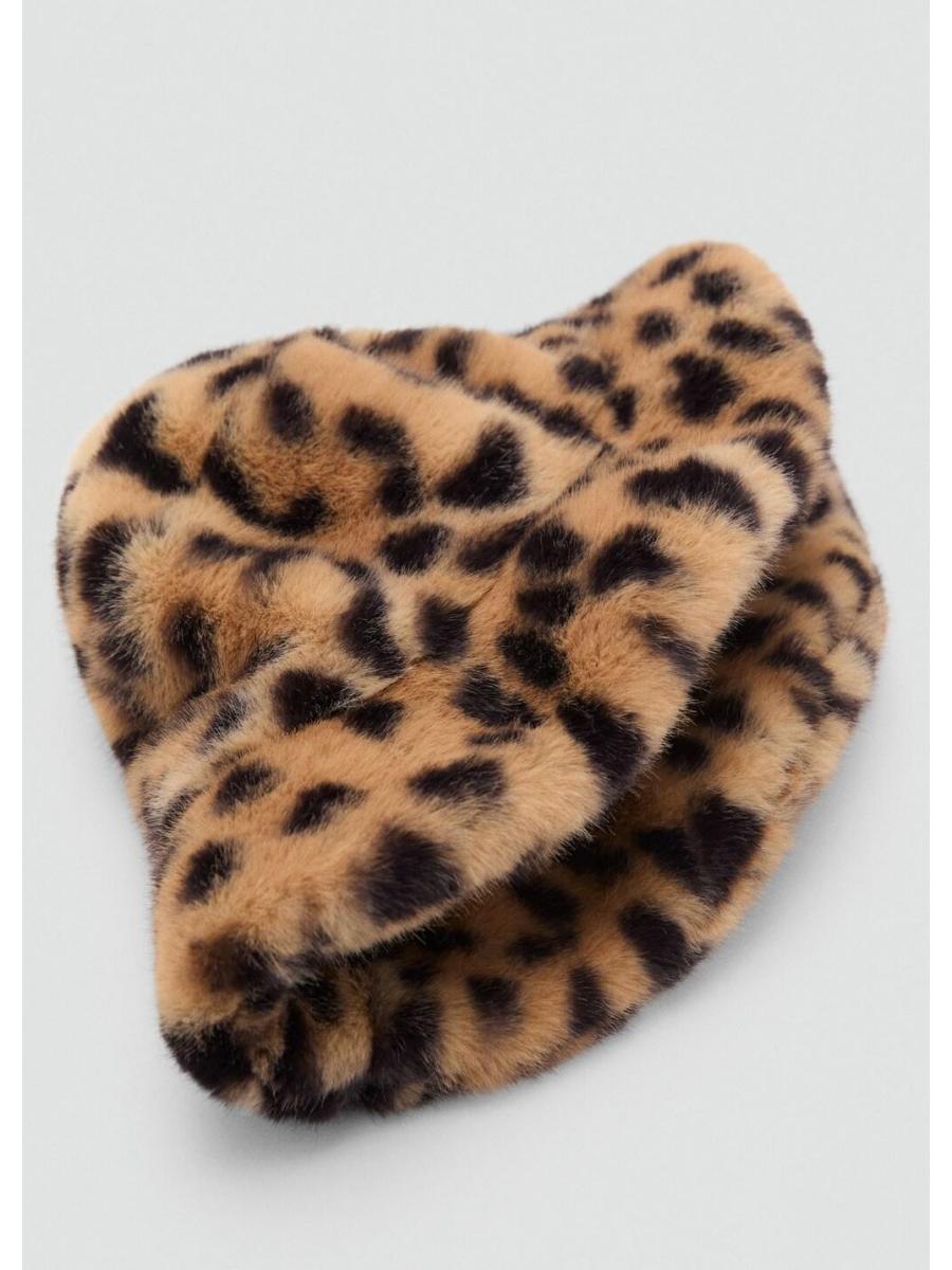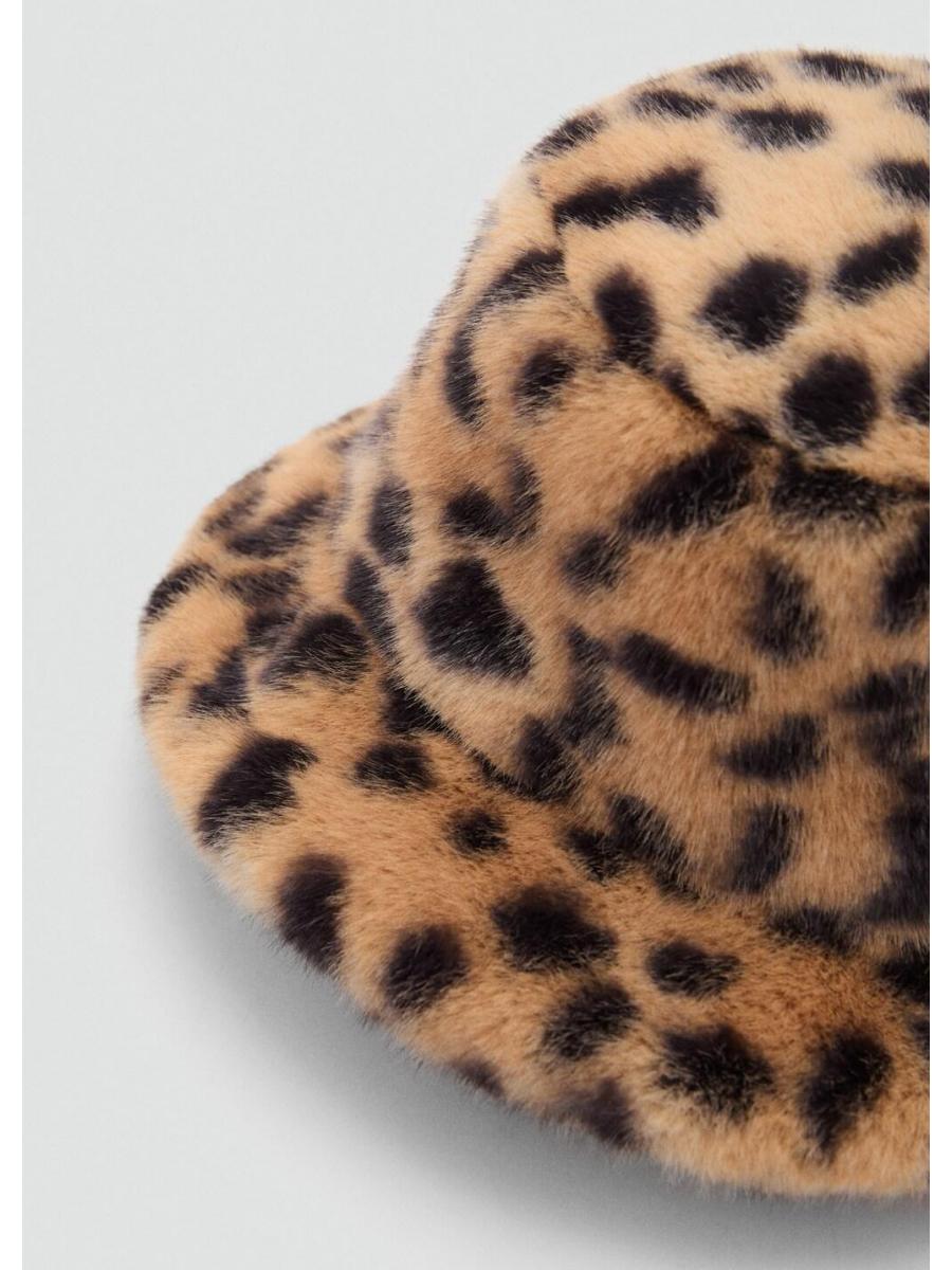 Efecto pelo. Diseño bucket. Estampado de leopardo. Sin cierre