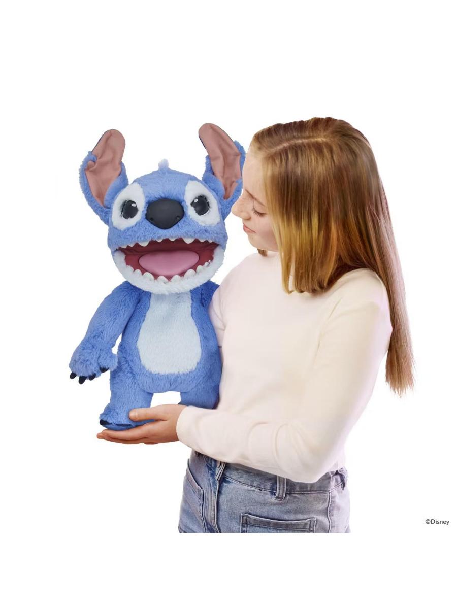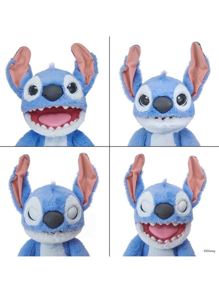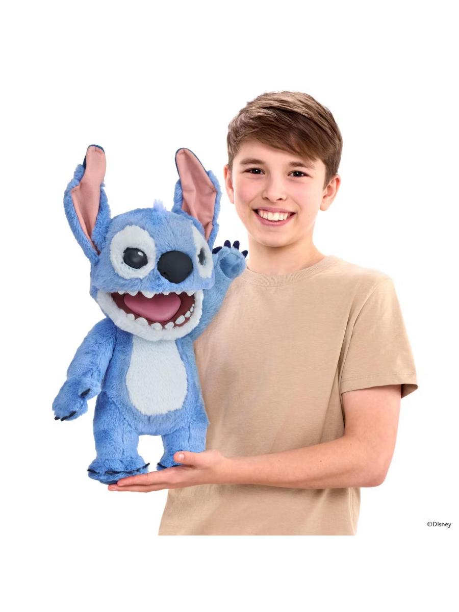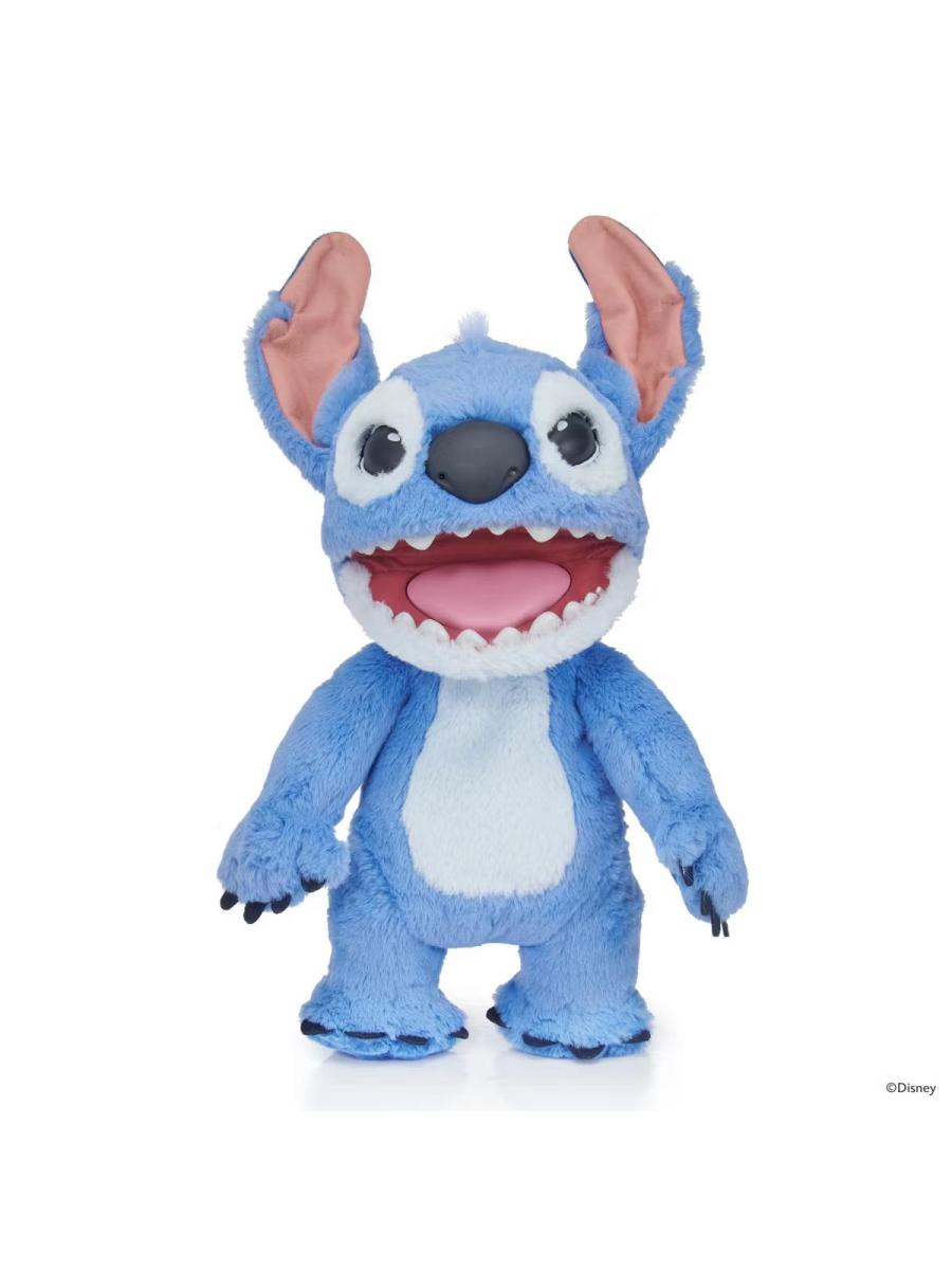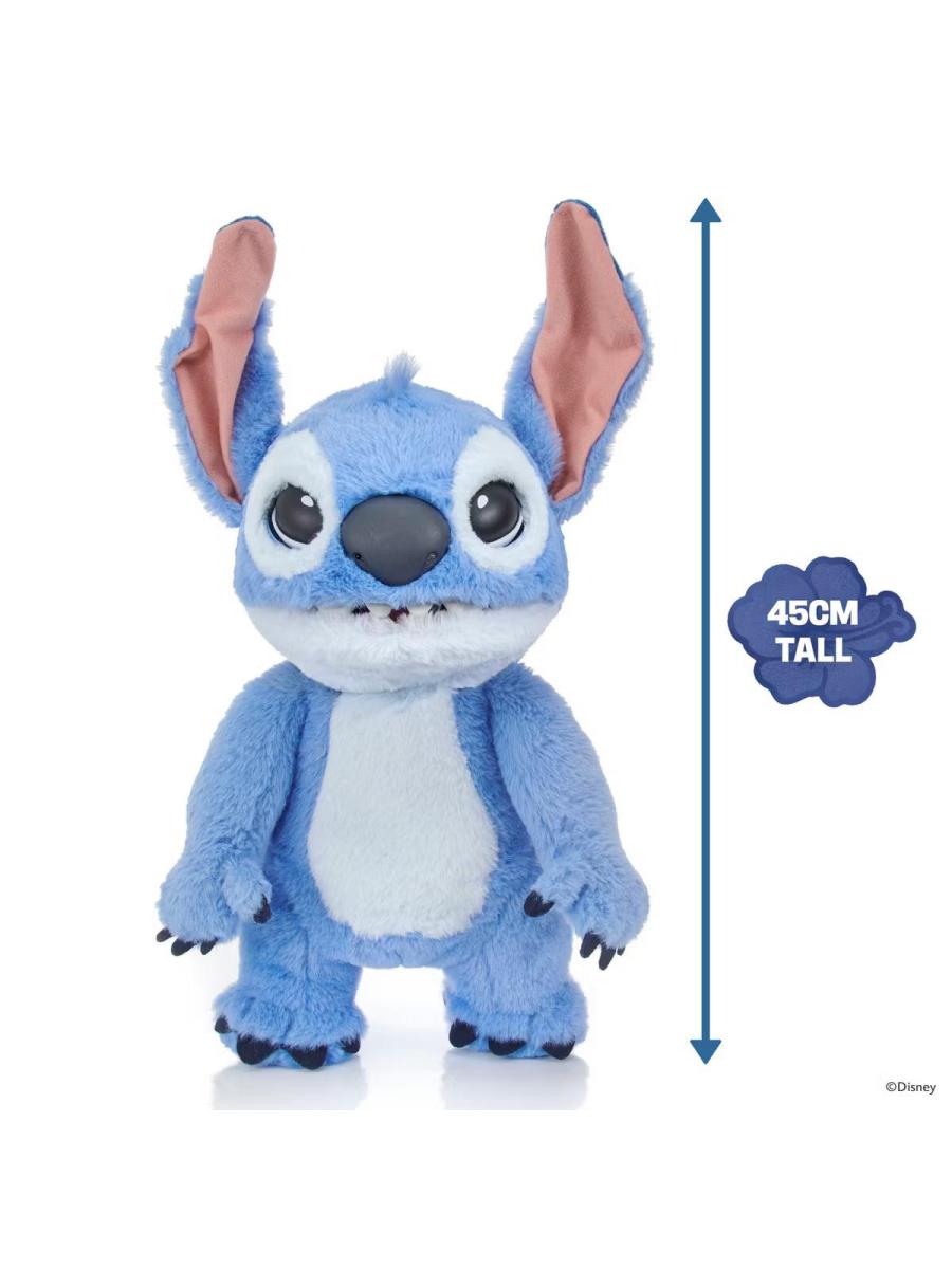 Get ready to meet your new best friend, the Disney Live Action Stitch Puppetronic by RealFX! Standing at 45cm tall, this incredible animatronic Stitch brings the beloved character to life in his new extra fluffy movie styling, with over 120 unique action and sound combinations. Watch in awe as his eyes blink, his mouth moves, and he responds to your touch with sensors on his head, nose, and tongue. Whether you're tapping his nose or gently patting his head, Stitch will react with lifelike interactions that are sure to captivate everyone.Featuring Dual Play technology, this lovable creature combines electronics with puppetry to deliver a soft, cuddly companion that’s fully interactive. It's perfect for fans of all ages—kids, teens, and adults alike. With its stunning 'alien capsule' inspired display case, Live Action Stitch is an absolute must-have for any Lilo & Stitch fan.This officially licensed Disney product from WOW! Stuff is a toy that’s as fun to play with as it is to display. Whether you're a seasoned collector or just discovering Stitch, the Disney Live Action Stitch Puppetronic is guaranteed to bring magic and joy into your home. Batteries not included (3 x AAA). Don’t miss out, bring Stitch home today!