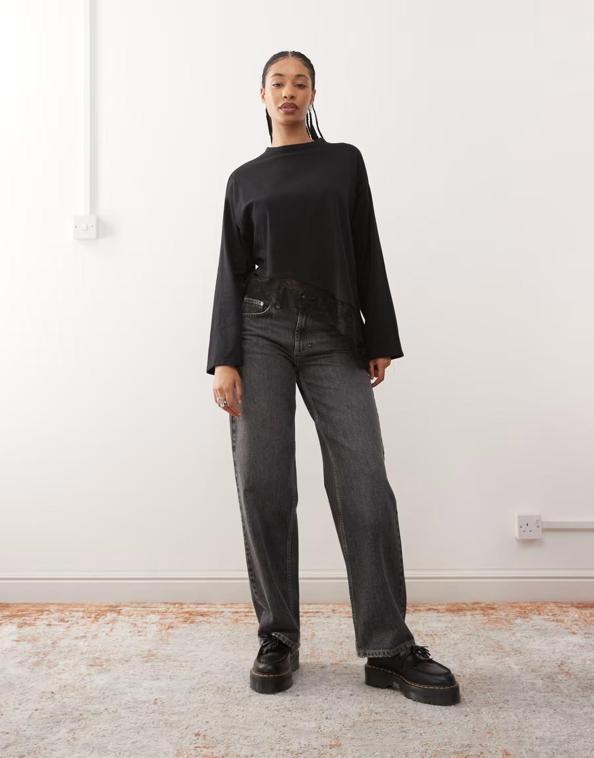 Main: 94% Cotton, 6% Elastane.If your aesthetic is part on-trend, part throwback vibes, then you’ll love Reclaimed Vintage. With two distinct collections, Reclaimed Vintage Inspired serves up fresh designs with a vintage twist, while Reclaimed Vintage Revived is all about handpicked vintage gems and customised pieces. From bold-printed dresses and utility trousers to embellished jackets and accessories, our Reclaimed Vintage at ASOS edit has it all and more.Size & FitModel's height: 175.5cm / 5' 9''