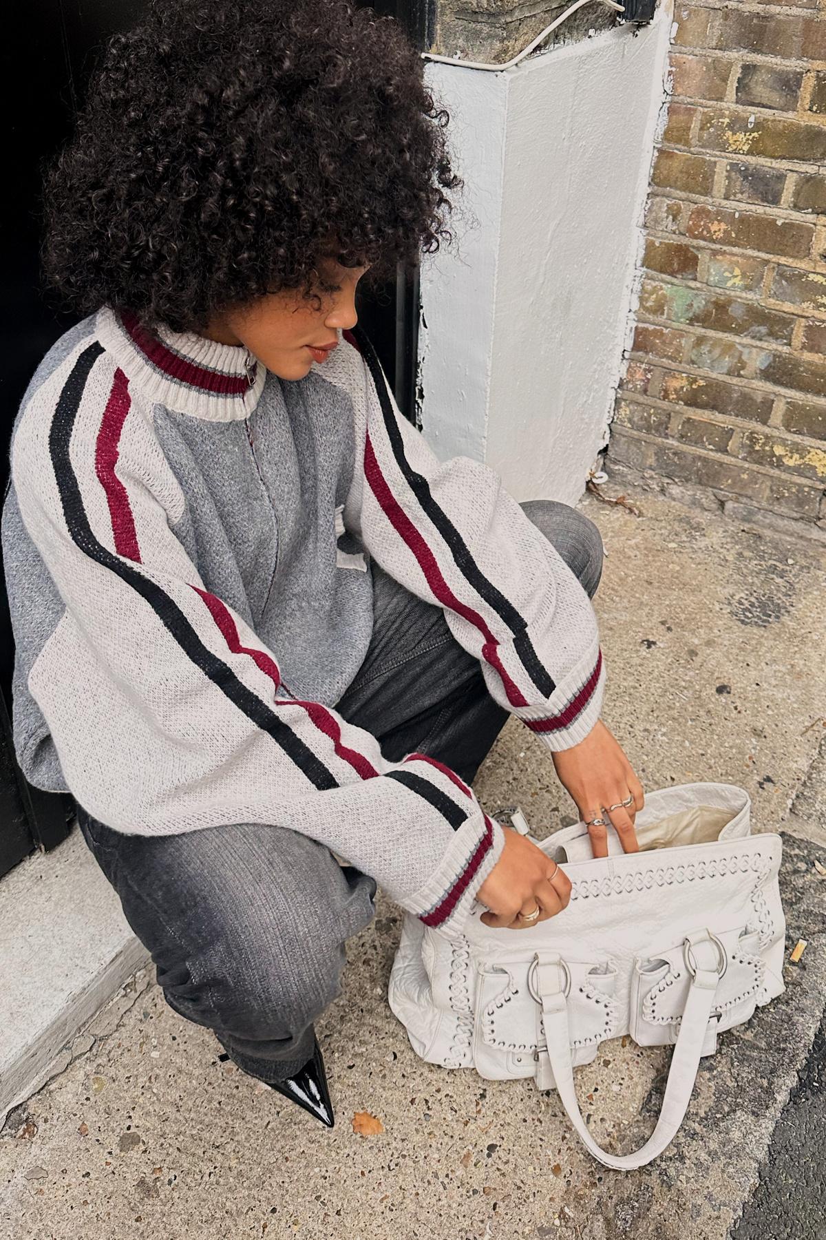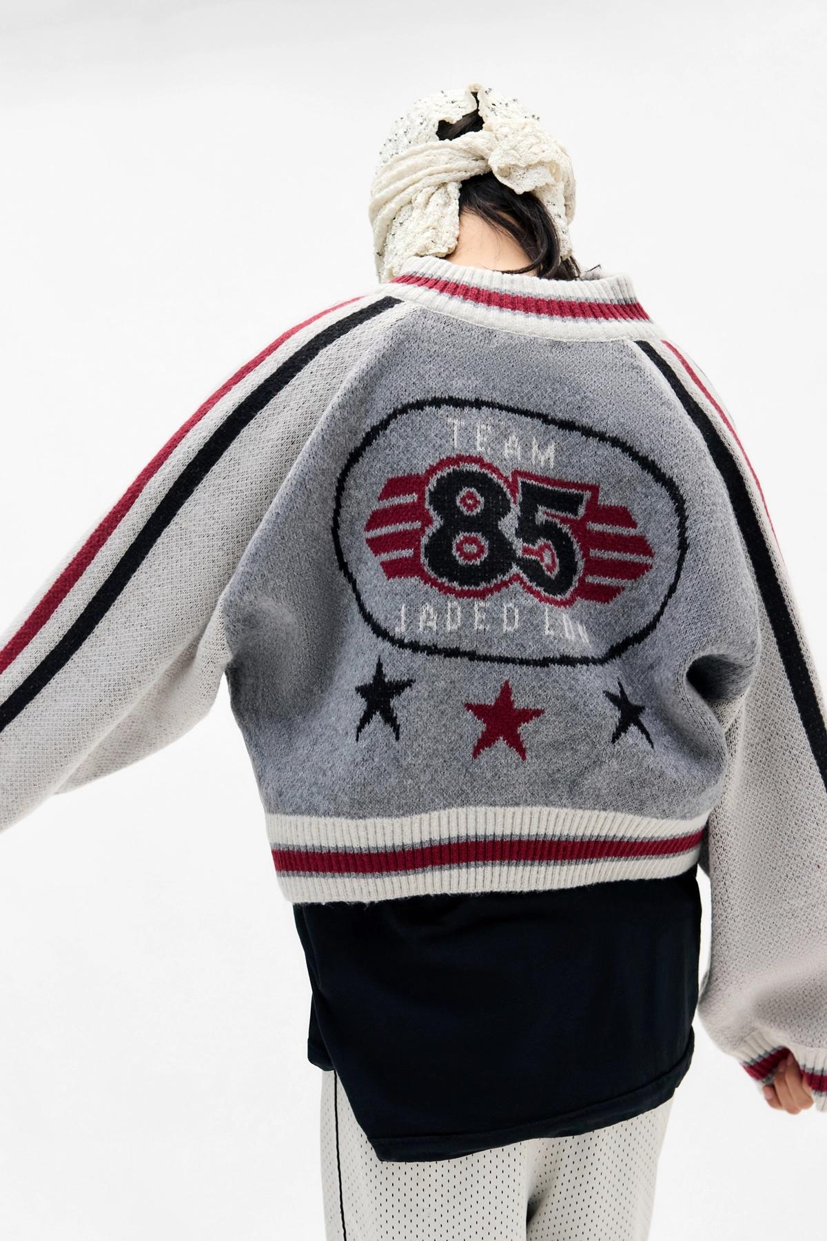 Jaded London Grey Team 85 Knitted Bomber Jacket