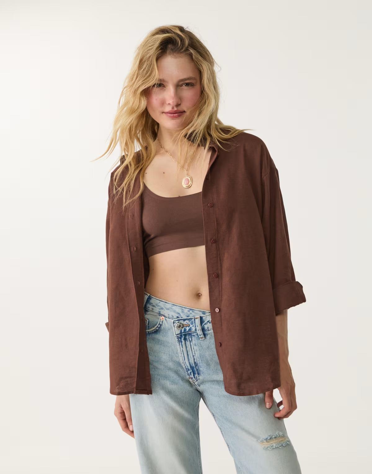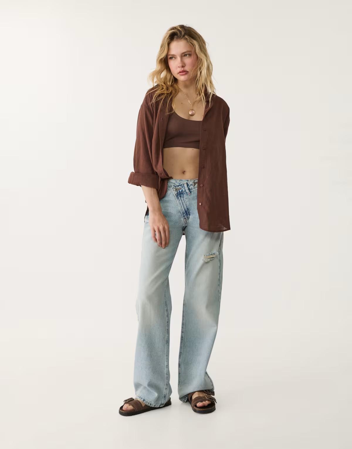 Main: 50% Viscose, 40% Cotton, 10% Linen.Barcelona-born clothing brand Stradivarius moves to its own beat. With an eye for minimalism and trend-led detail, expect classic silhouettes and a neutral colour palette (with the odd print thrown in for good measure). The perfect stop for a wardrobe refresh, our Stradivarius at ASOS edit has everything from floaty day dresses and blouses to staple jeans and T-shirts. Looking for layers? Check out the brand’s jumpers, jackets and blazers.
