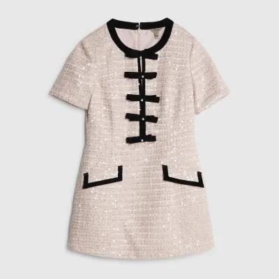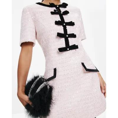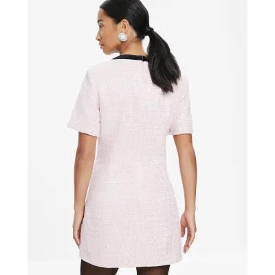 Petite Pink Bow Front Boucle Mini Dress