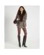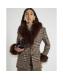 Brown Faux Fur Collar Check Wrap Coat