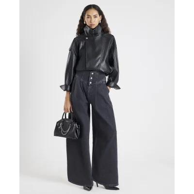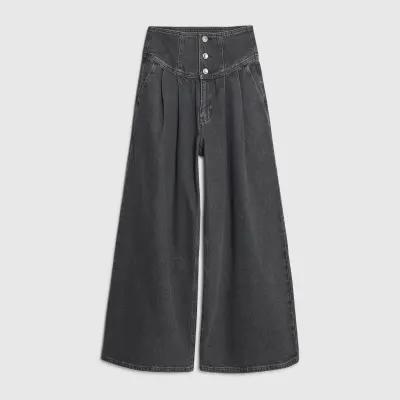 Grey Wide Leg Corset Button Up Jeans