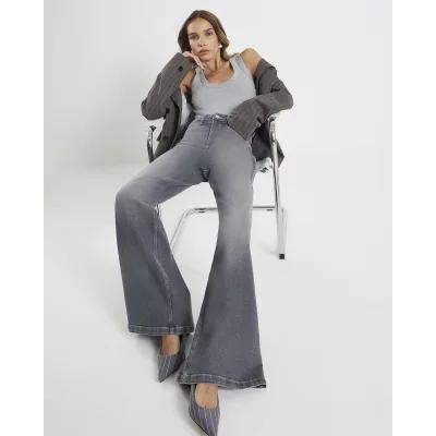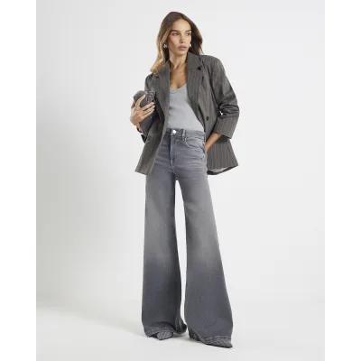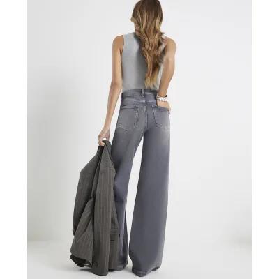Grey Palazzo Wide Leg Jeans