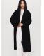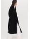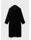 Confeccionado en tejido de lana virgen Manteco, este diseño largo y recto presenta un cuello pico con solapas de muesca. Incluye manga larga, cinturón tipo batín y abertura posterior en el bajo