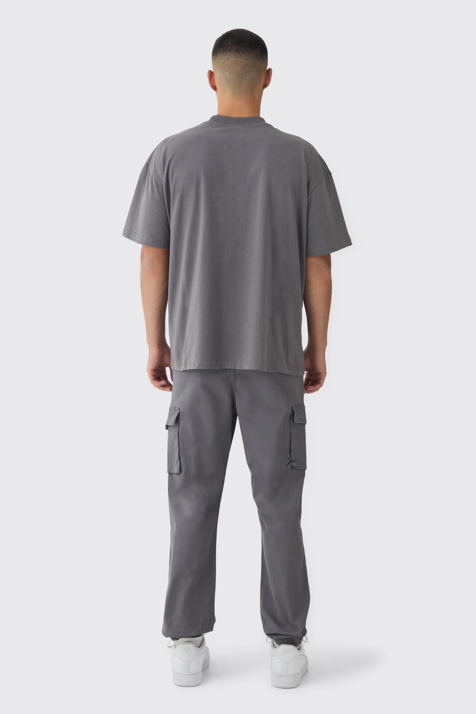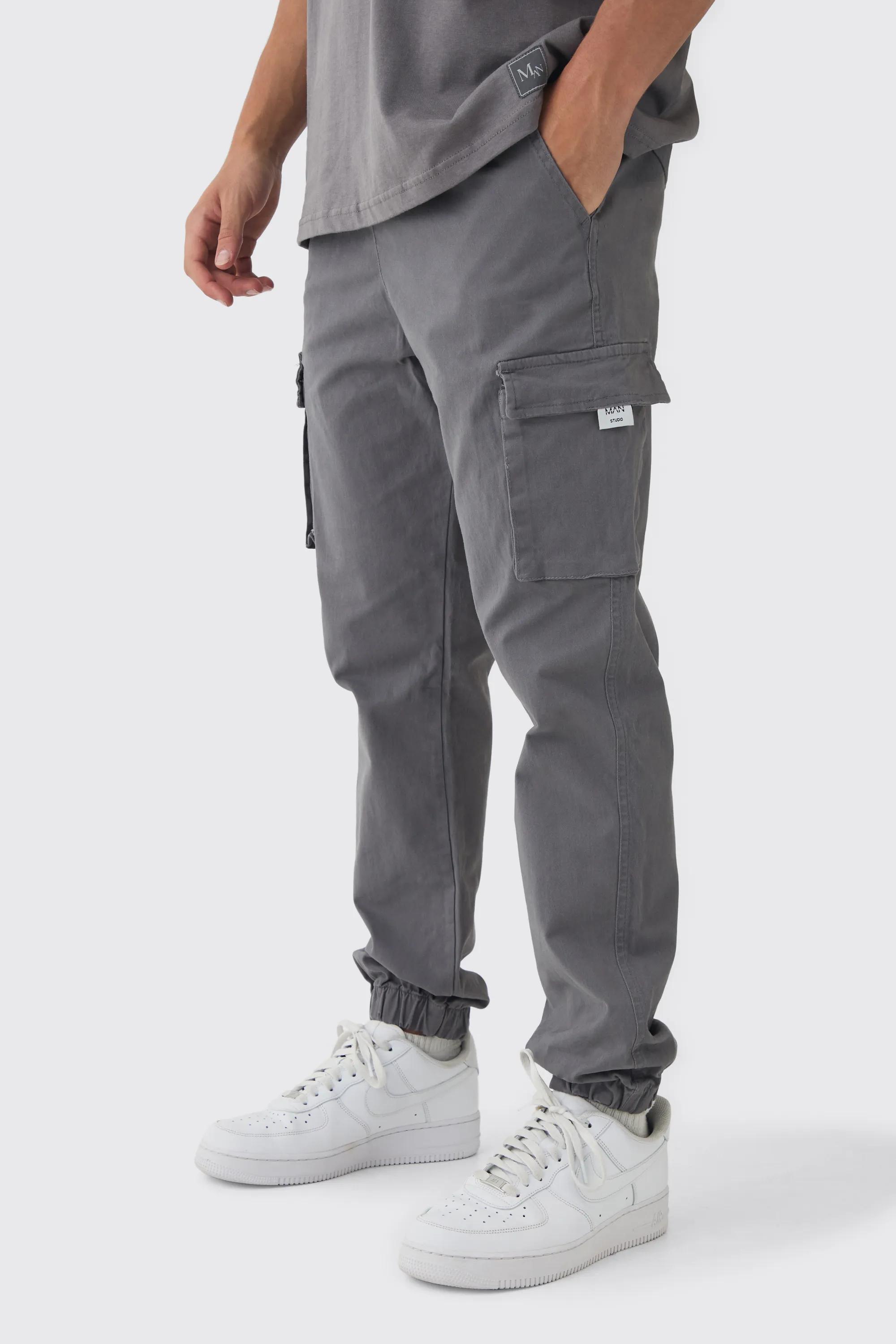 Trousers | Slim Fit Elasticated Waist Woven Tab Cuffed Cargo Trousers | boohooMAN