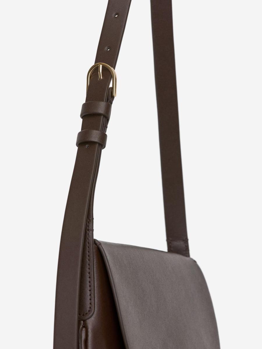 Leather shoulder bag with flap and magnet closure. Gold-plated trims and inside pocket. Width 30,8 cm, height 25,3 cm. Strap drop 40 cm (when buckled in middle hole).ARKET/