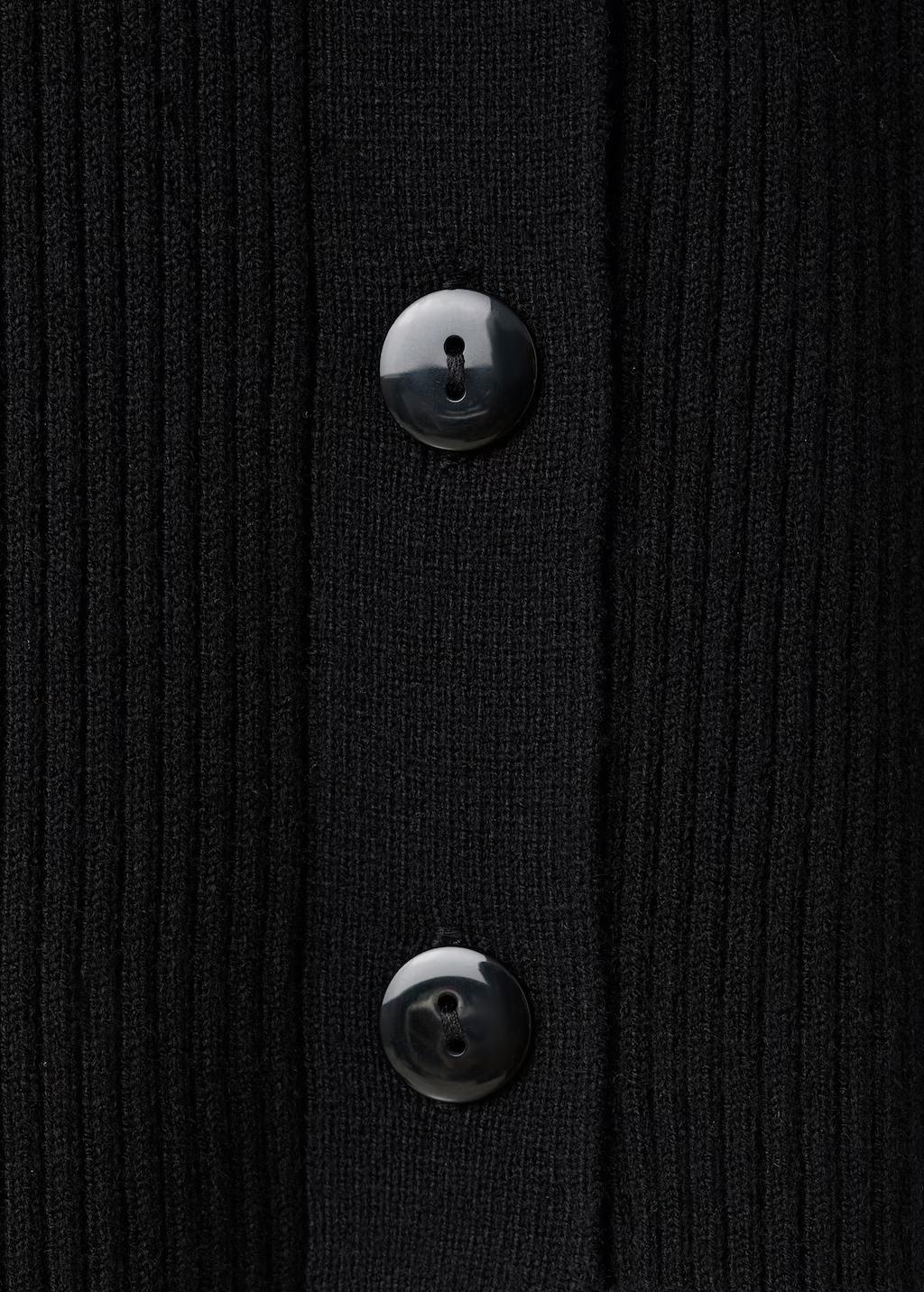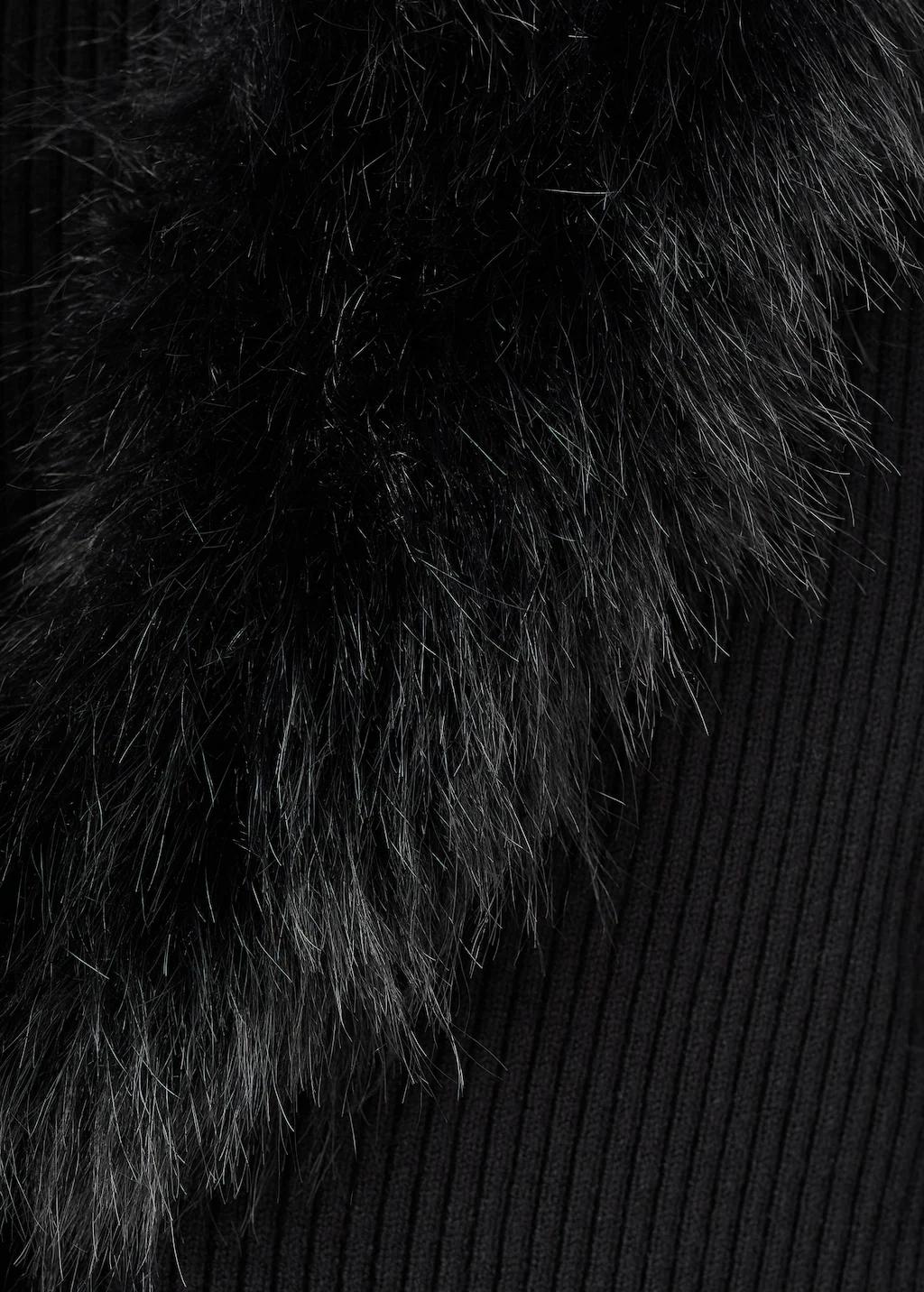 Tejido de punto de canalé. Diseño entallado. Cuello pico. Cuello con detalle de pelo sintético. Manga larga. Cierre delantero con botones