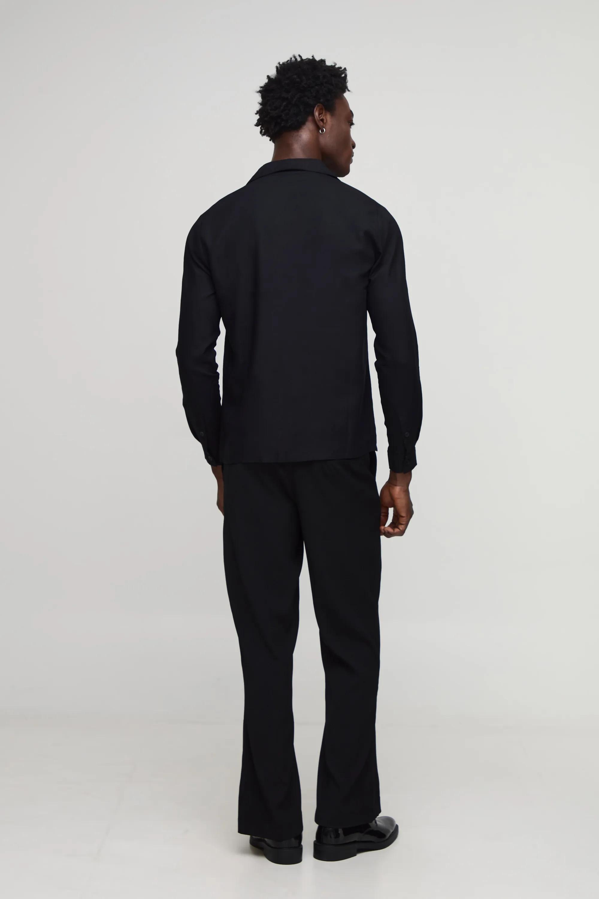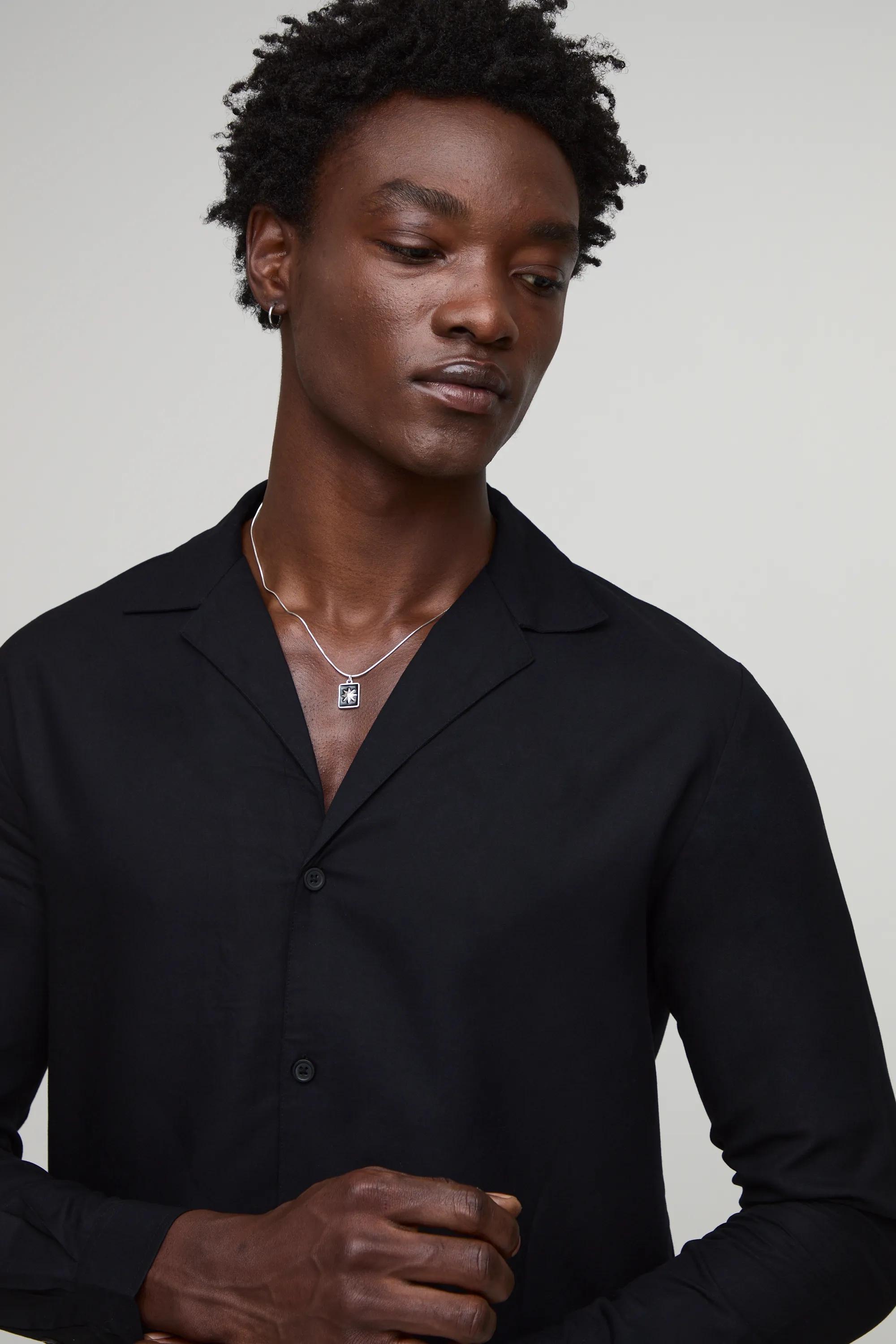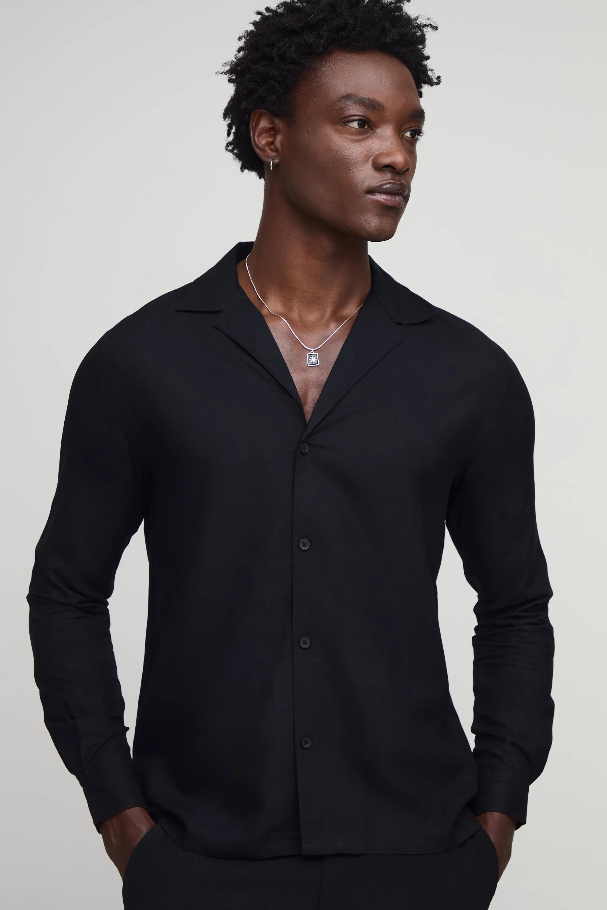 Shirts | Regular Viscose Long Sleeve Deep Revere Shirt | boohooMAN