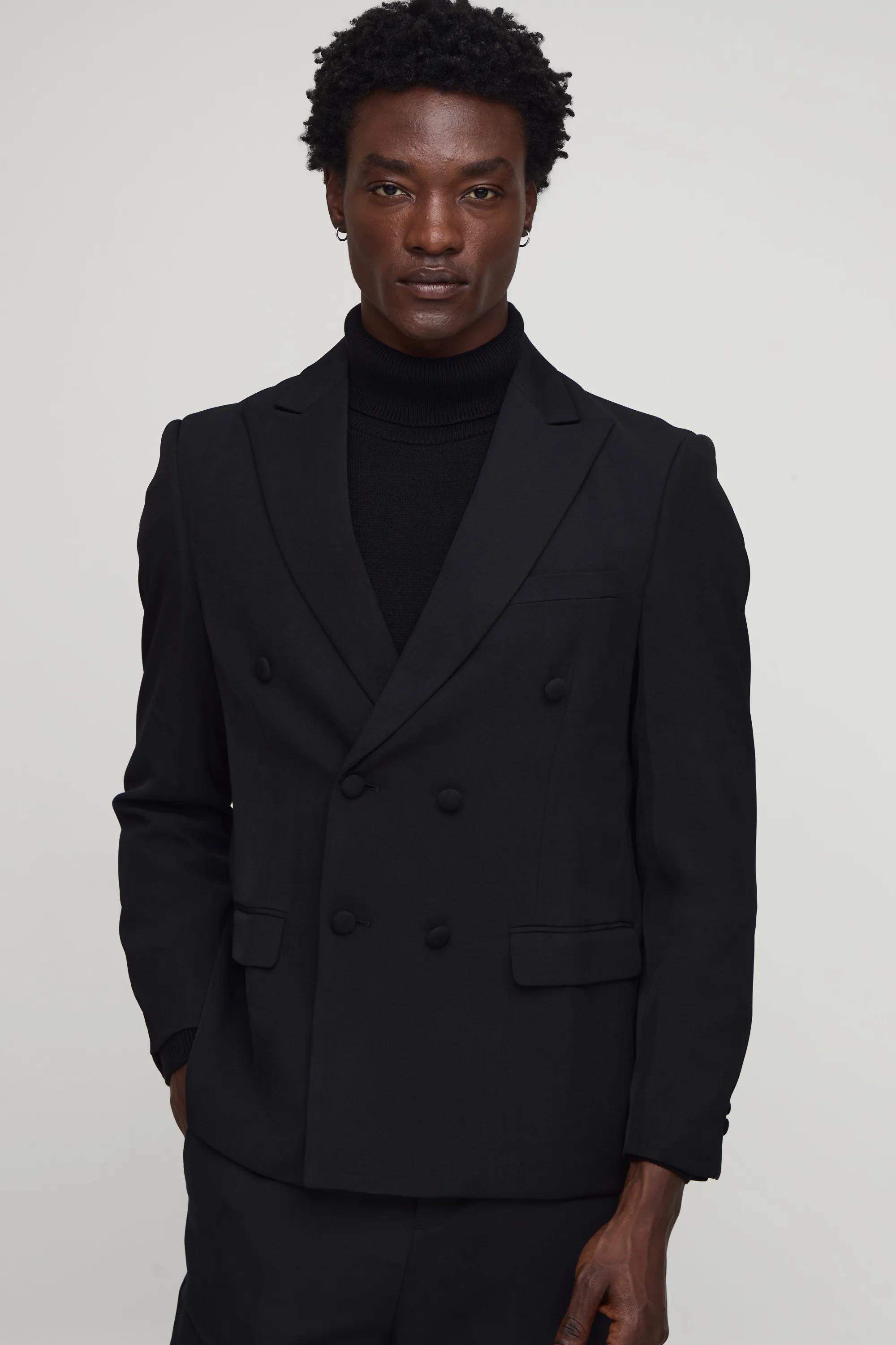 Jackets & Coats | Oversized Double Breasted Exaggerated Collar Satin Blazer | boohooMAN