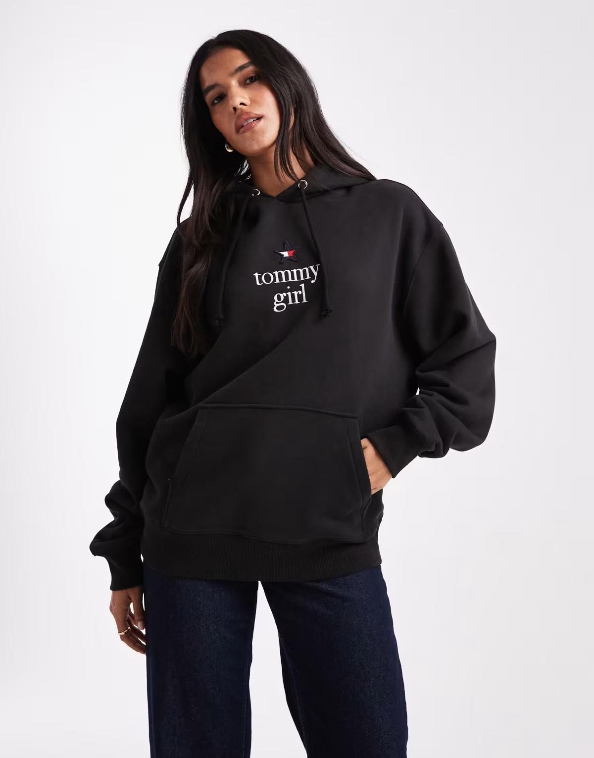 Main: 100% Cotton.Founded in 1985, all-American brand Tommy Jeans is best known for its preppy vibe and iconic red, white and blue logo. Branching out, the brand has stepped up its collections to include everything from clothing and accessories to lingerie and fragrances. Scroll our Tommy Jeans at ASOS edit for classic denim pieces from Tommy Jeans, workout gear from Tommy Hilfiger Sport, as well as wardrobe-ready T-shirts, dresses, jackets and coats.Size & FitModel's height: 170cm / 5' 7''
