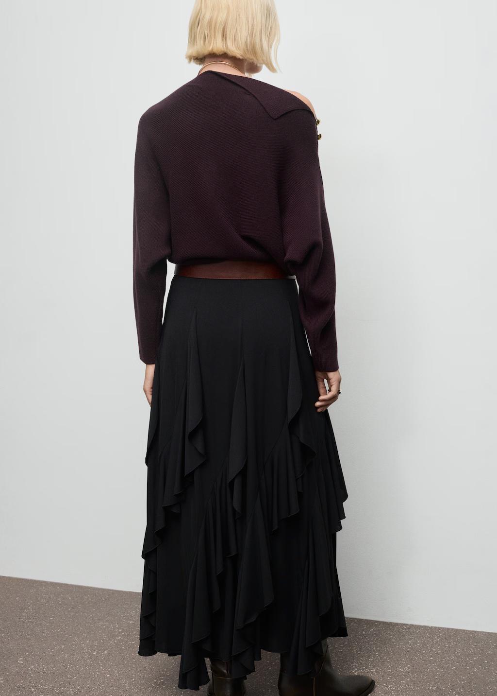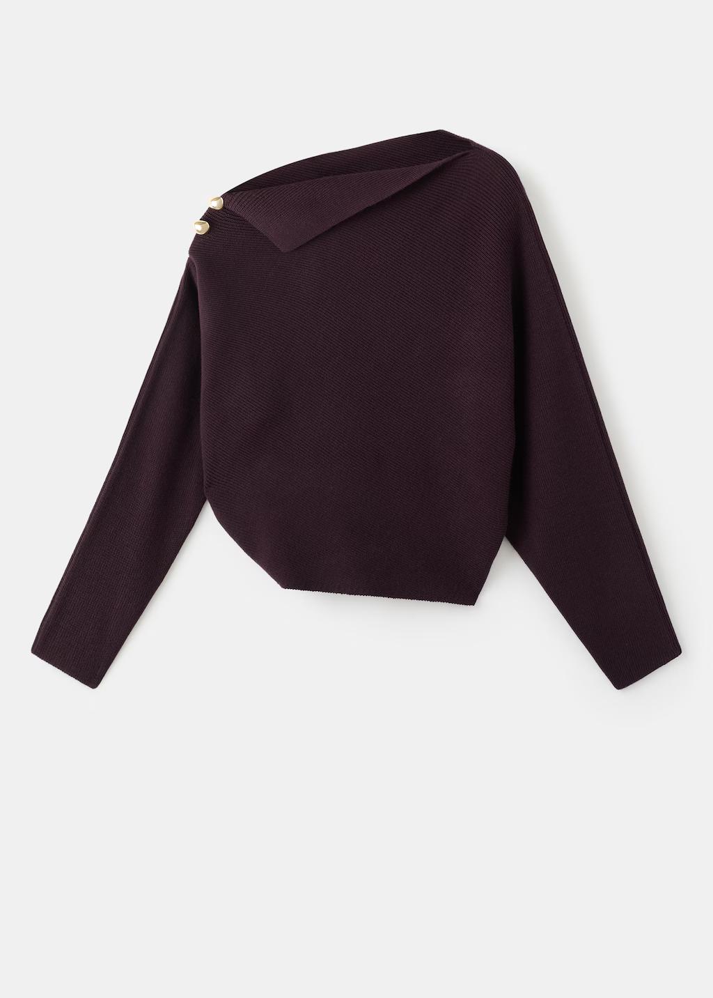Tejido de punto. Diseño recto. Cuello asimétrico. Manga larga. Detalle de botones en el hombro. Botones efecto joya
