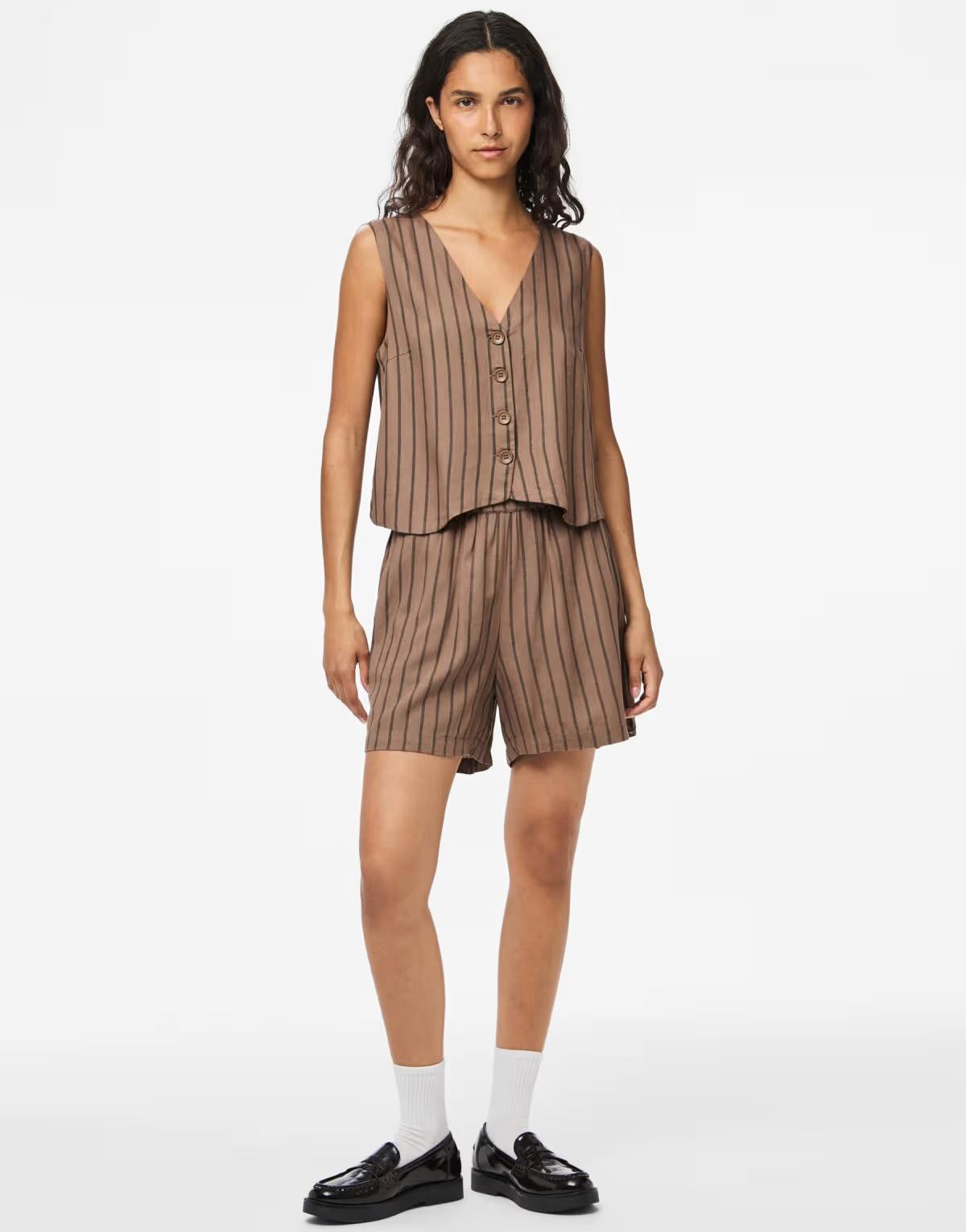 Main: 70% Viscose, 30% Linen.With its Scandinavian roots and minimalist styling, Pieces is your go-to label for everyday essentials. From clothing and footwear to jewellery and accessories, the brand ties your look together with its directional collections. Think wear-with-everything denim, chunky knitwear and simple earrings designed to take you seamlessly from day to night.
