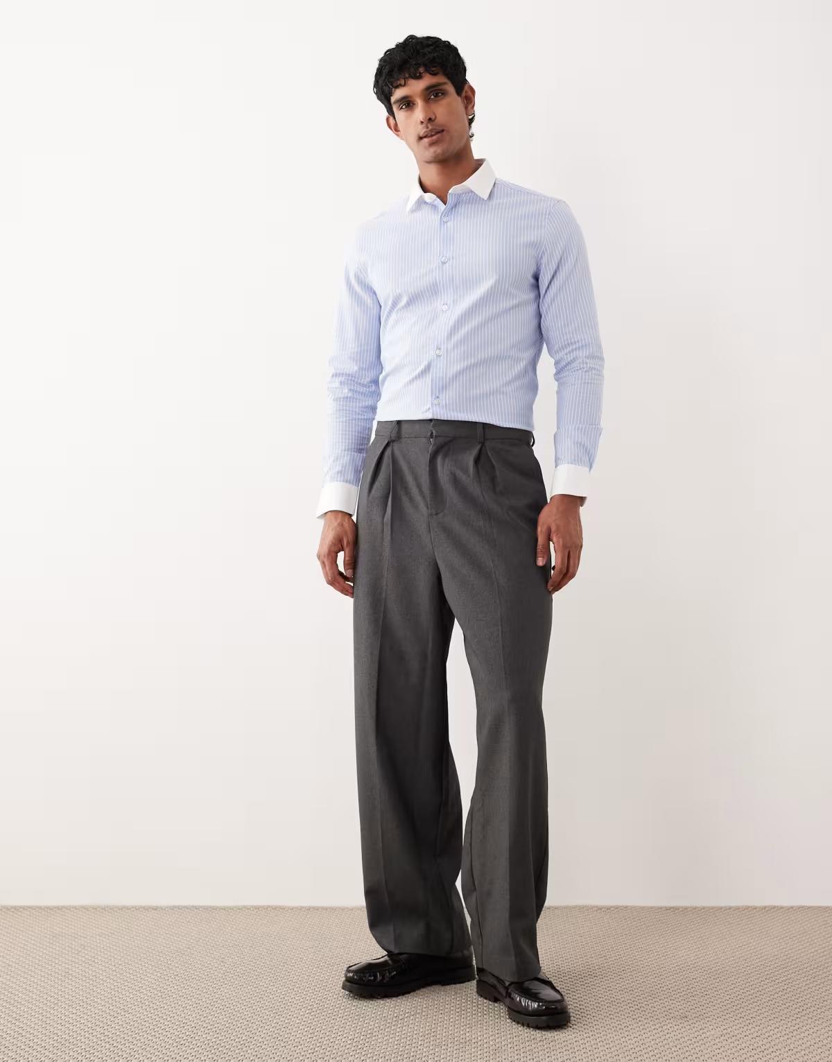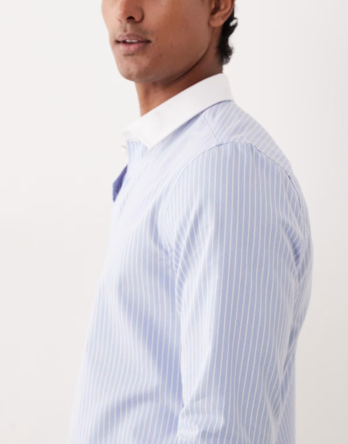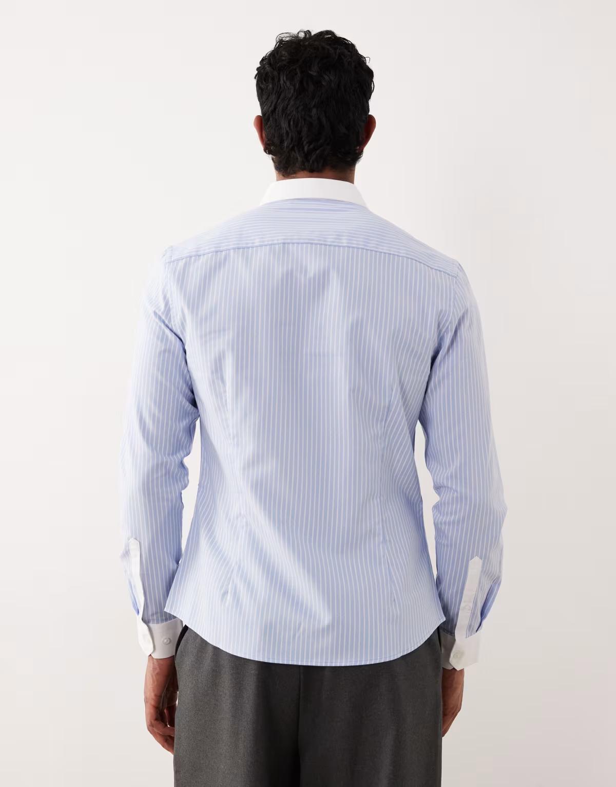 ASOS DESIGN slim poplin stripe shirt with contrast collar in blue