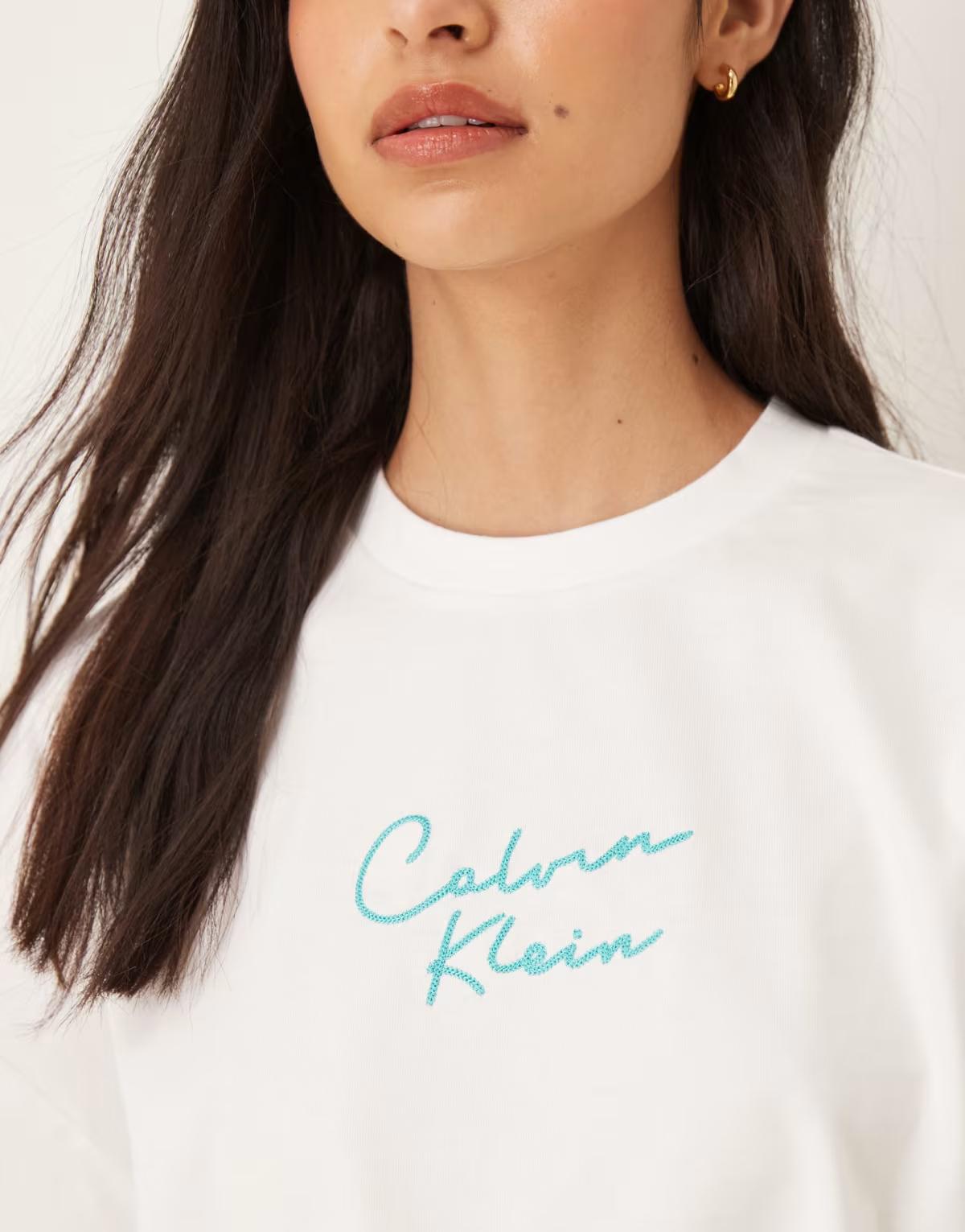 Main: 100% Cotton.Nobody does casual-cool like Calvin Klein Jeans. The designer brand’s minimal aesthetic and iconic CK logo are an easy way to level up any look. Scroll our Calvin Klein Jeans at ASOS edit for casual dresses, T-shirts, jeans and jackets, as well as fresh loungewear options to keep your off-duty aesthetic on point. Back to basics? Check out our pick of its cult-status bras, briefs and lingerie sets, plus swimwear and accessories for all-year-round style points.Size & FitModel's height: 175cm / 5'9"