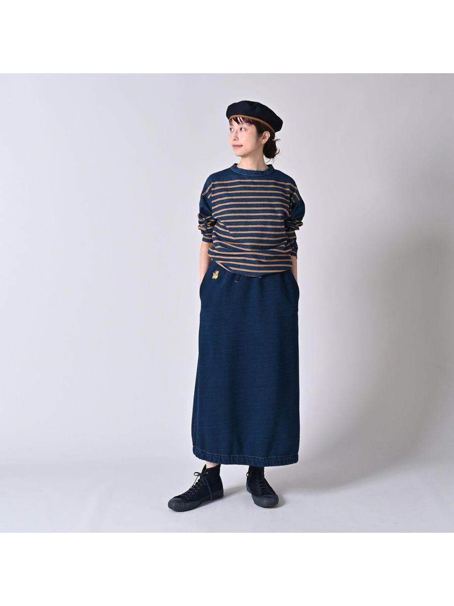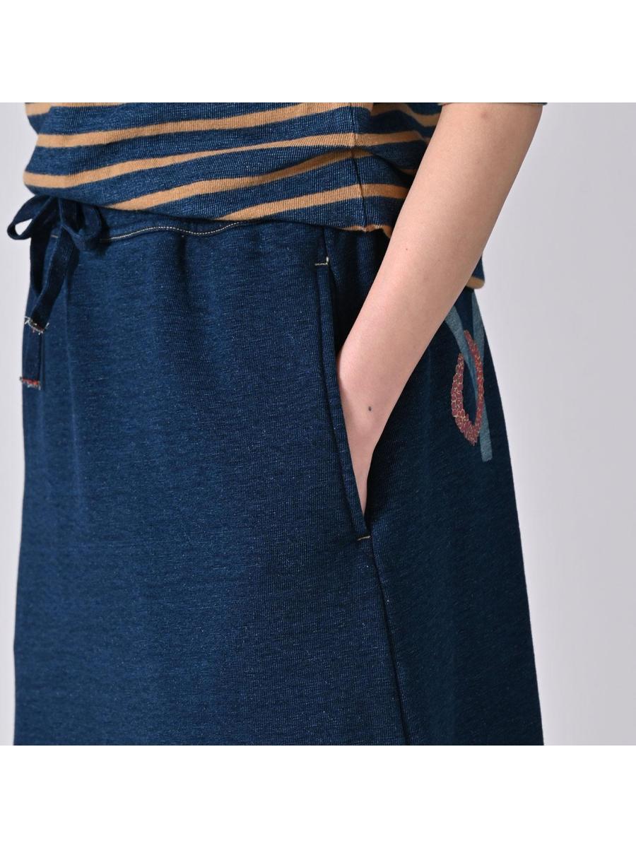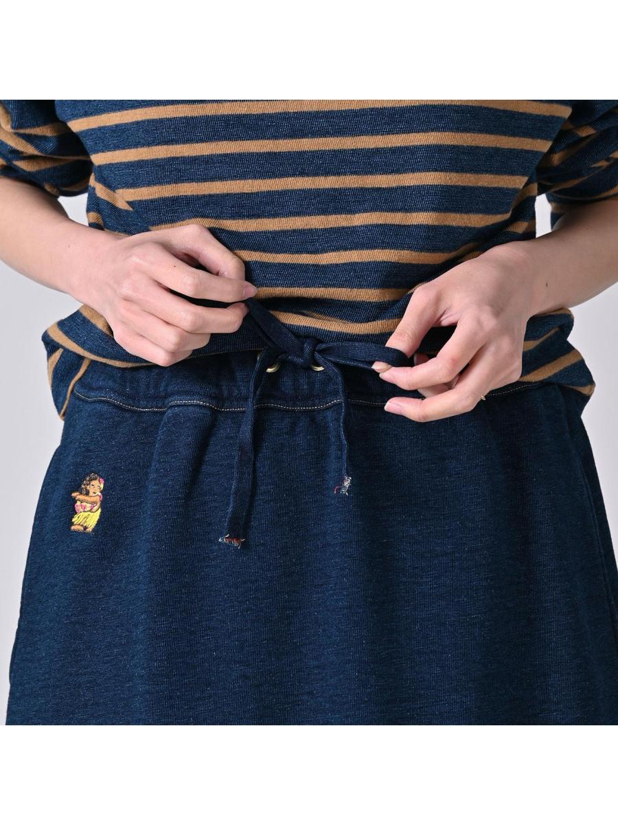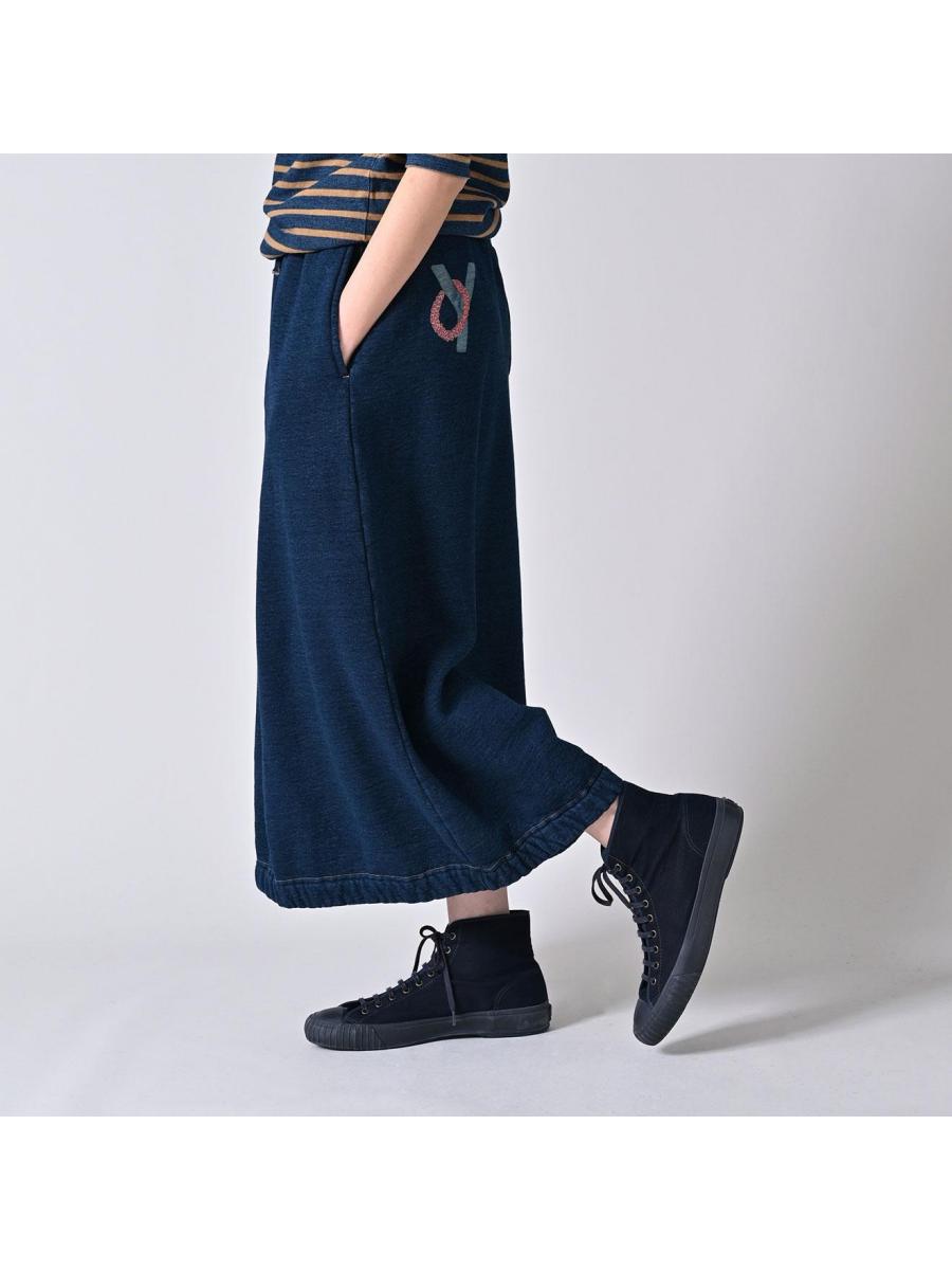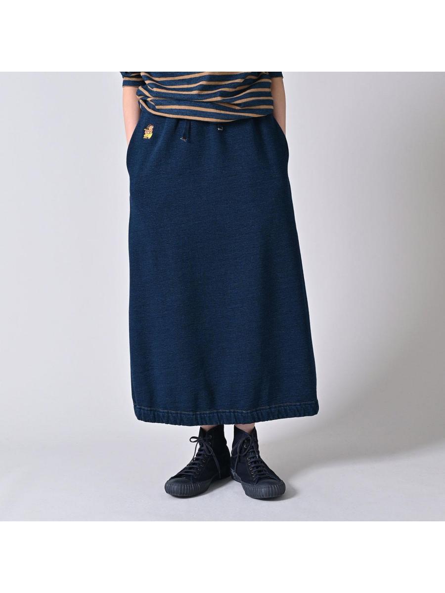 葉山ものがたり カヤッコちゃん刺繍の裏毛スカート(インディゴ)