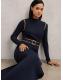 Reiss Navy/Camel Ella Colourblock Rib-Knit Midi Dress