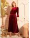 Love & Roses Red Velvet Flute Sleeve Midi Dress