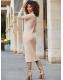 Sosandar Cream Roll Neck Cable Knit Midi Dress