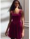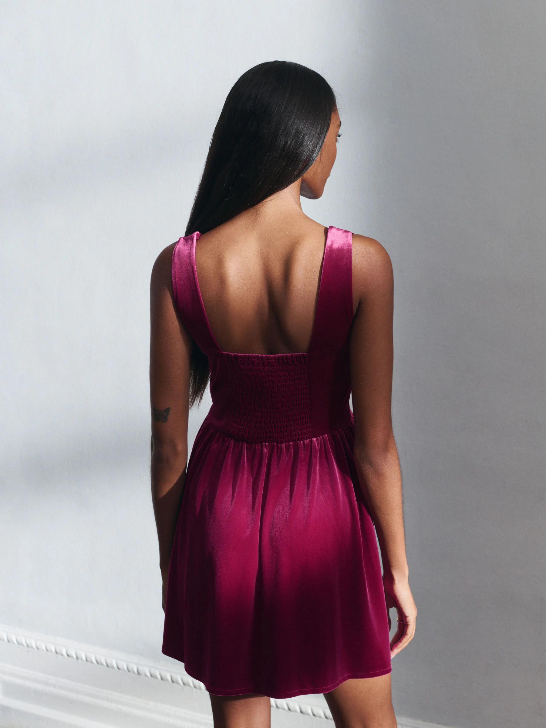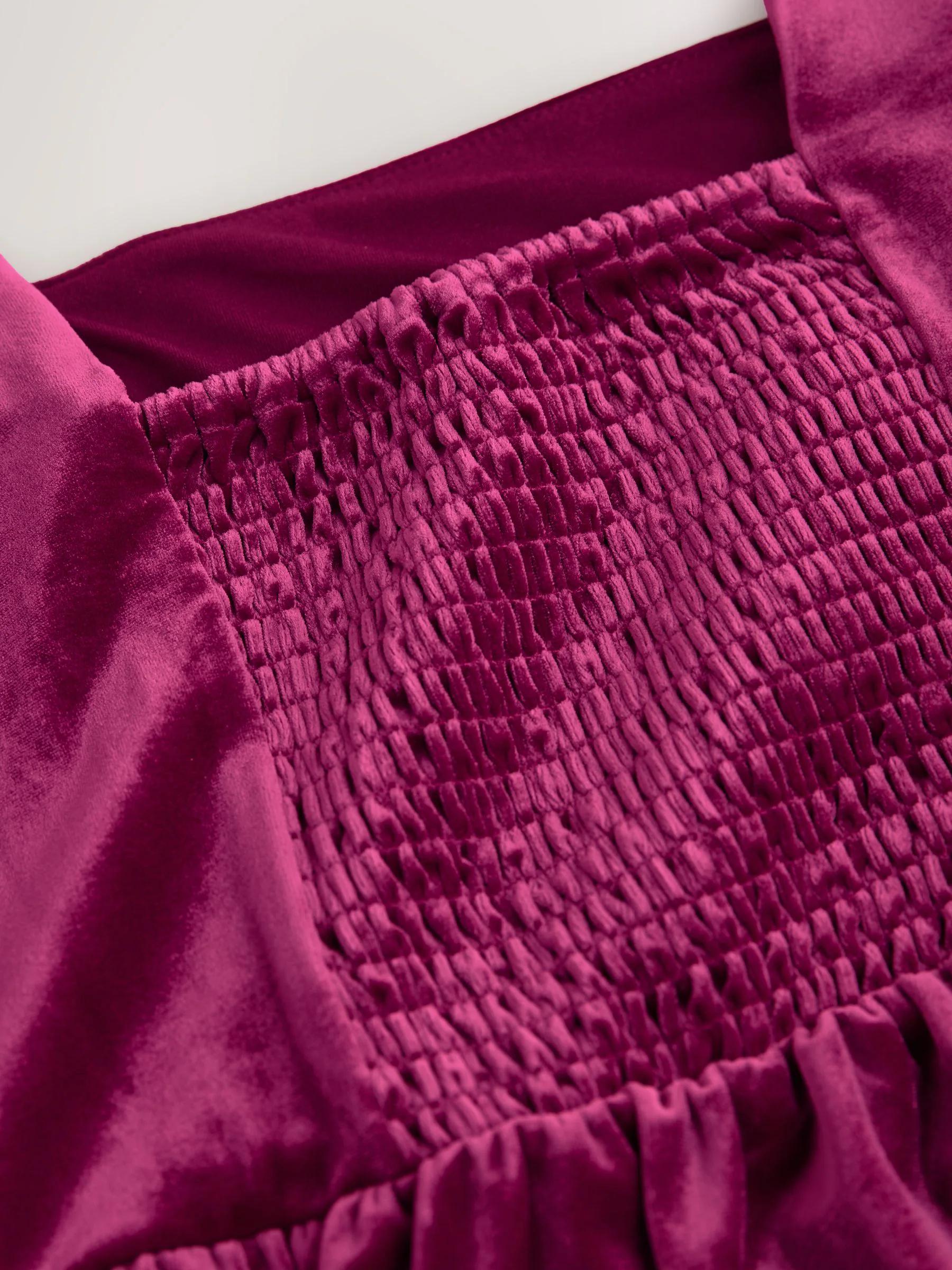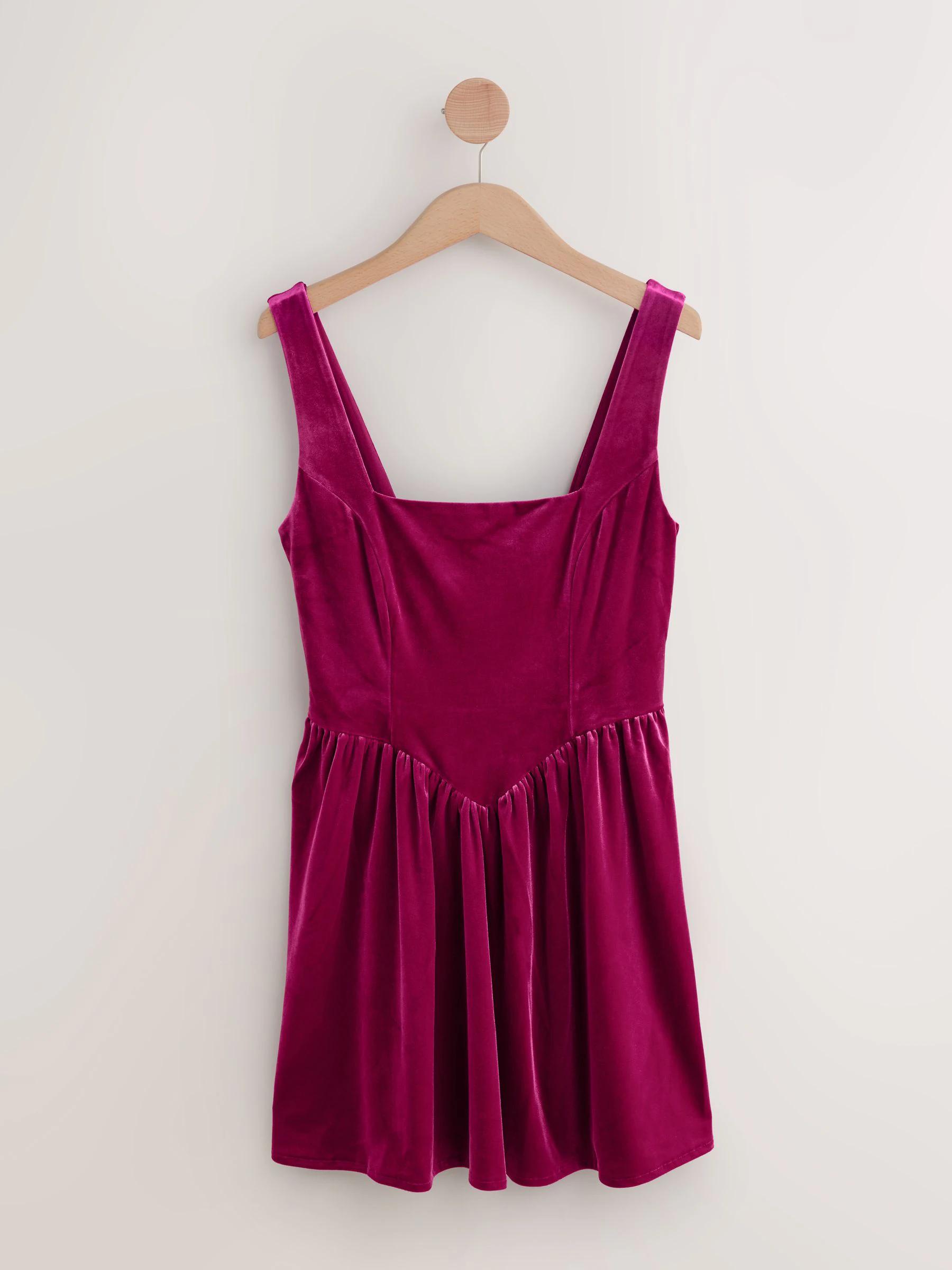 Bright Pink Velvet Square Neck Waisted Mini Dress