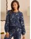Love & Roses Navy Long Sleeve Foil Detail Loungwear Top