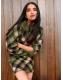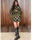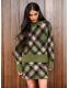 Khaki Green Tartan Check Knitted Mini Skirt With Wool