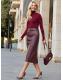 Sosandar Red Leather Panelled Pencil Midi Skirt
