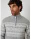 Threadbare Grey Textured Knitted Fairisle Quarter Zip Jumper