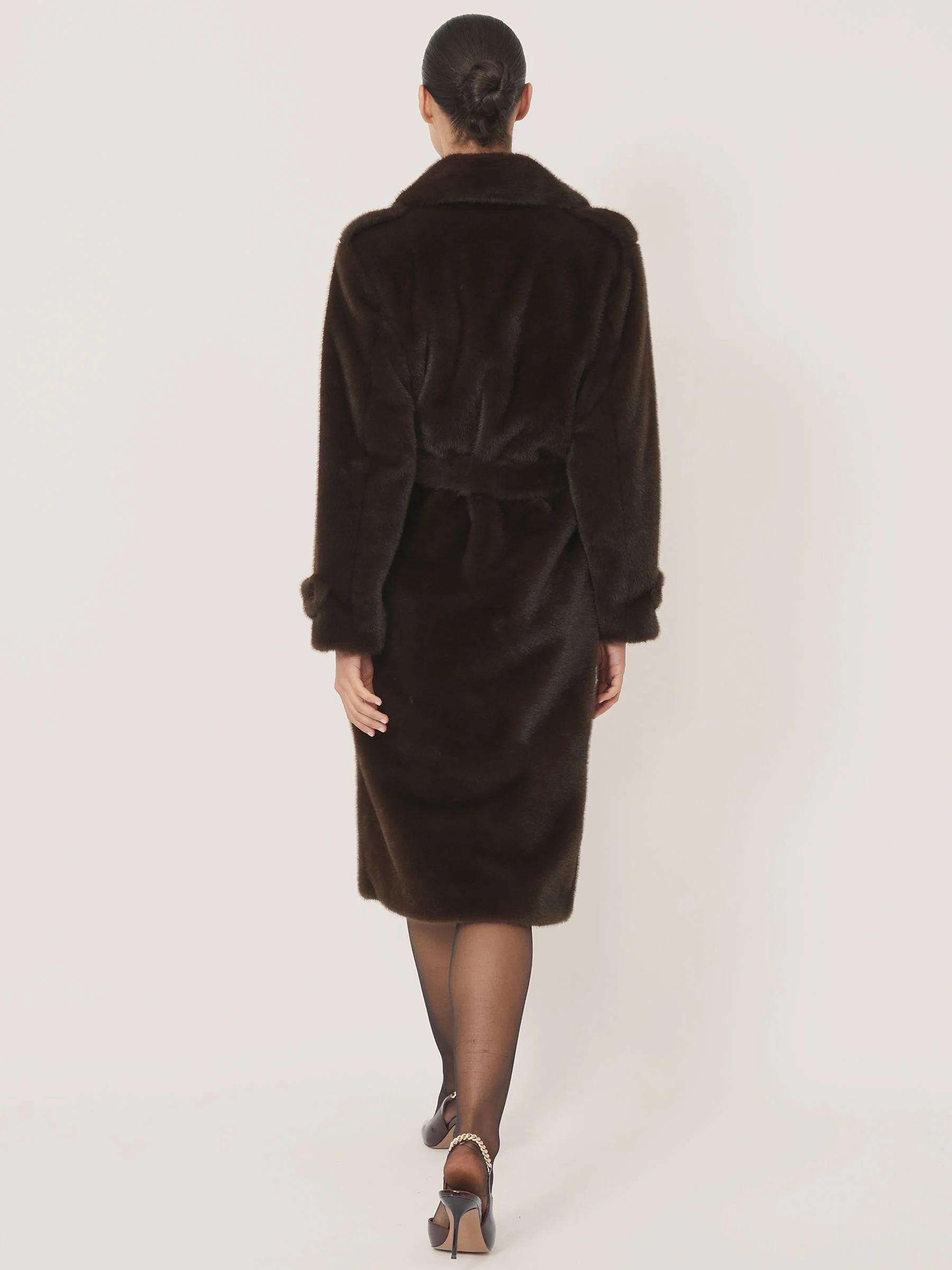 Reiss Chocolate Brown Cate Faux-Fur Long Belted Coat