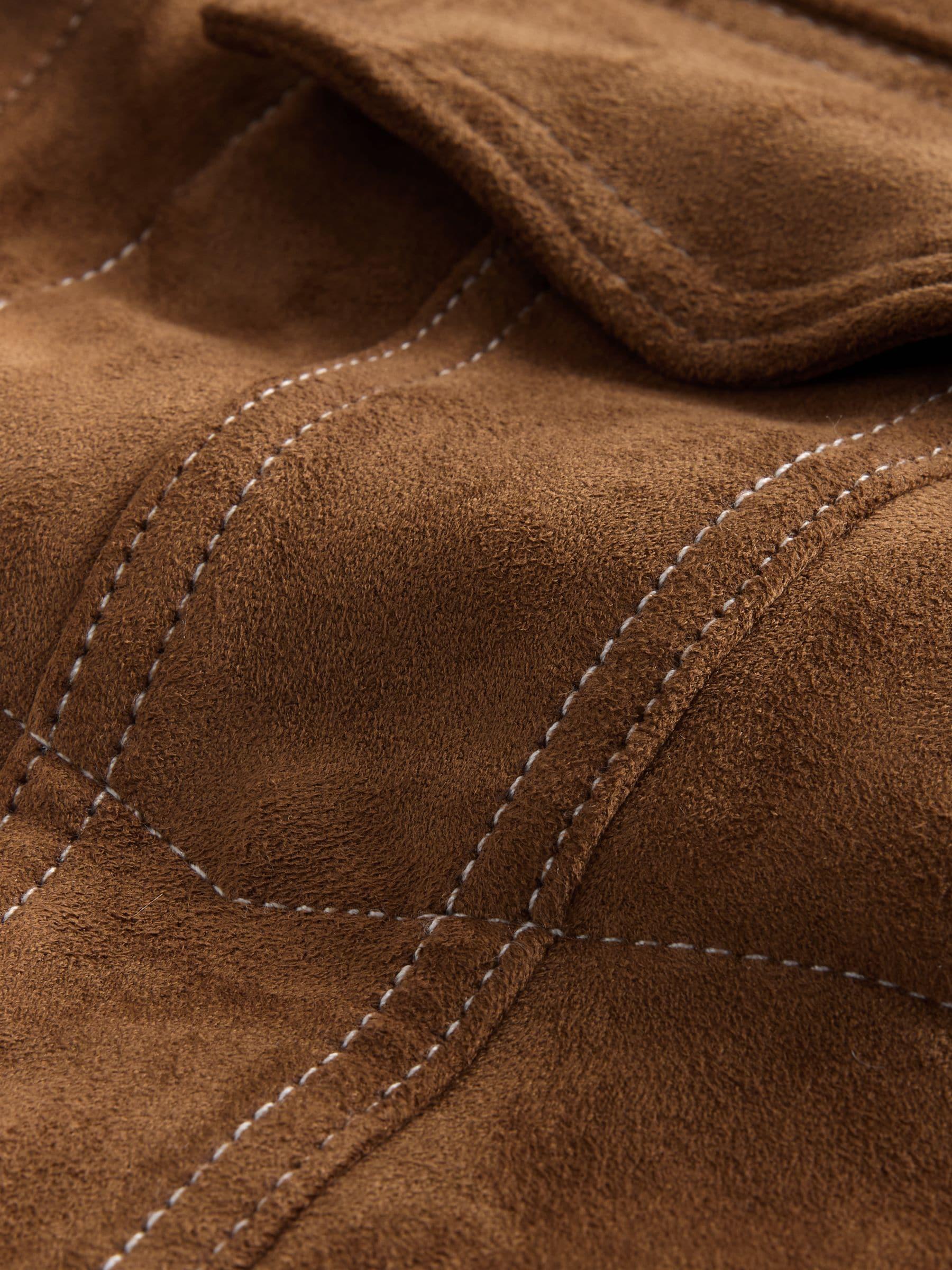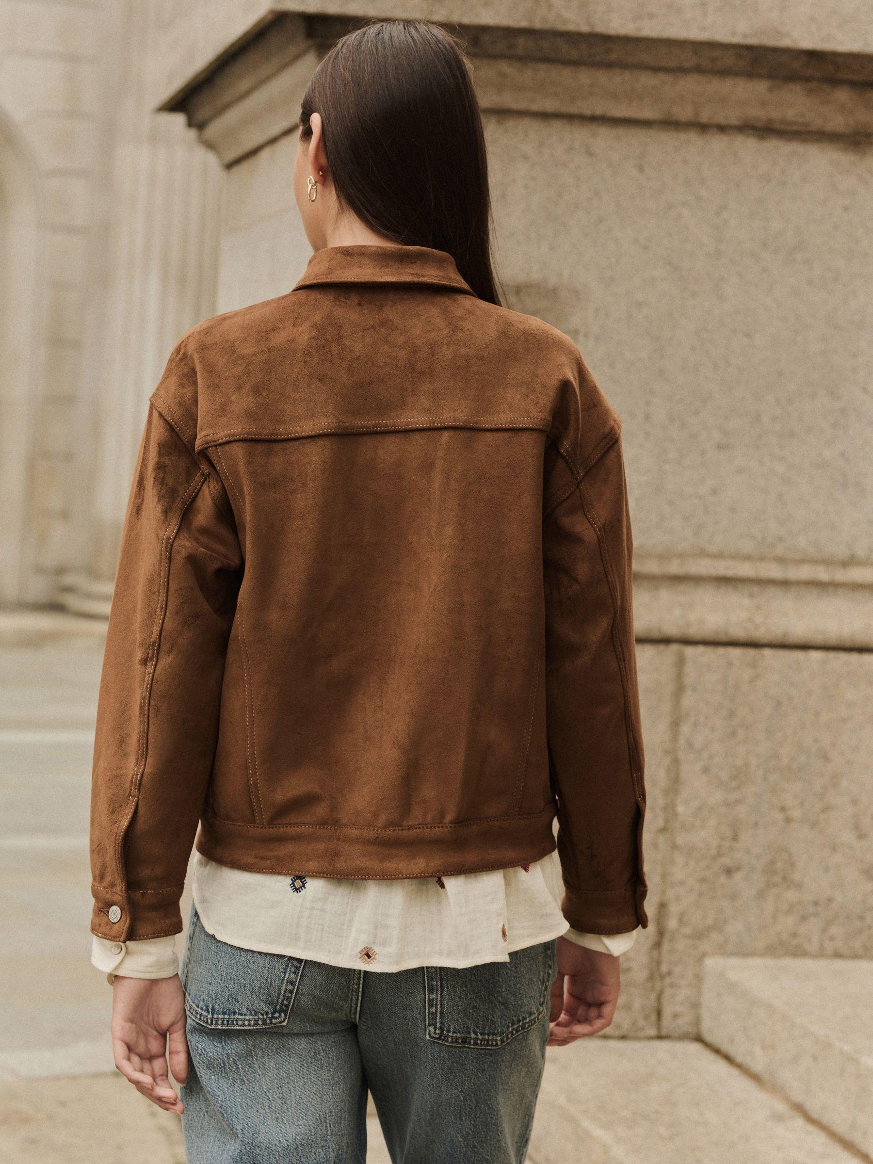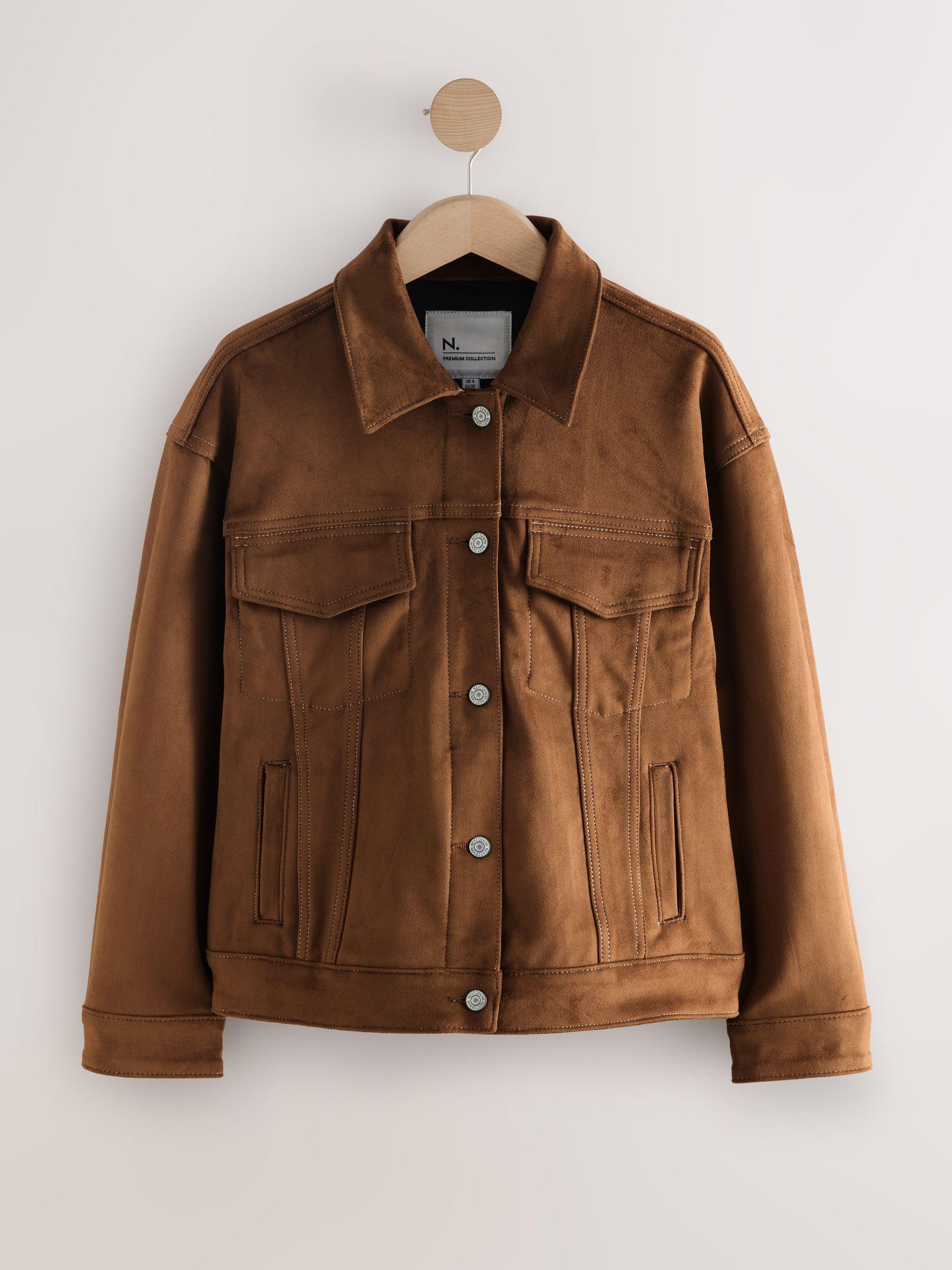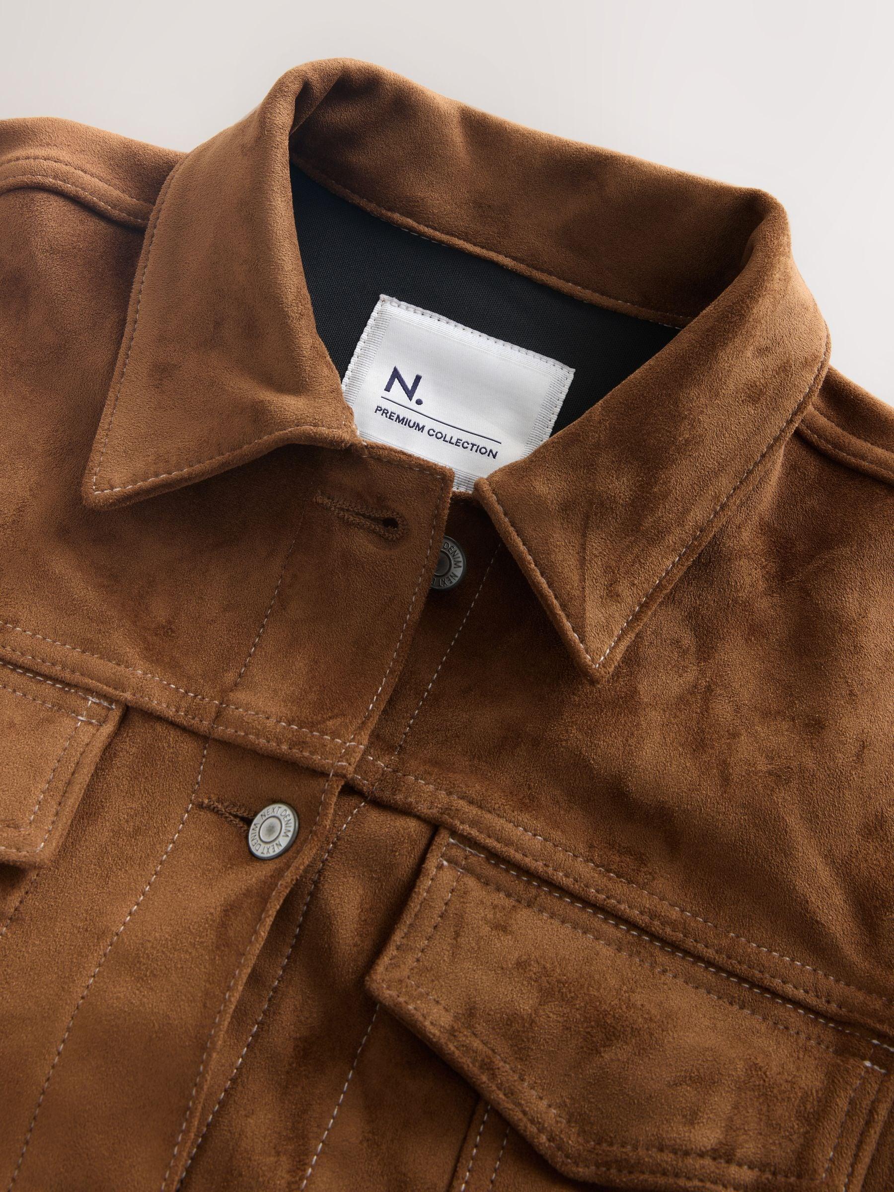 Tan Brown N. Premium Faux Suede Trucker Jacket