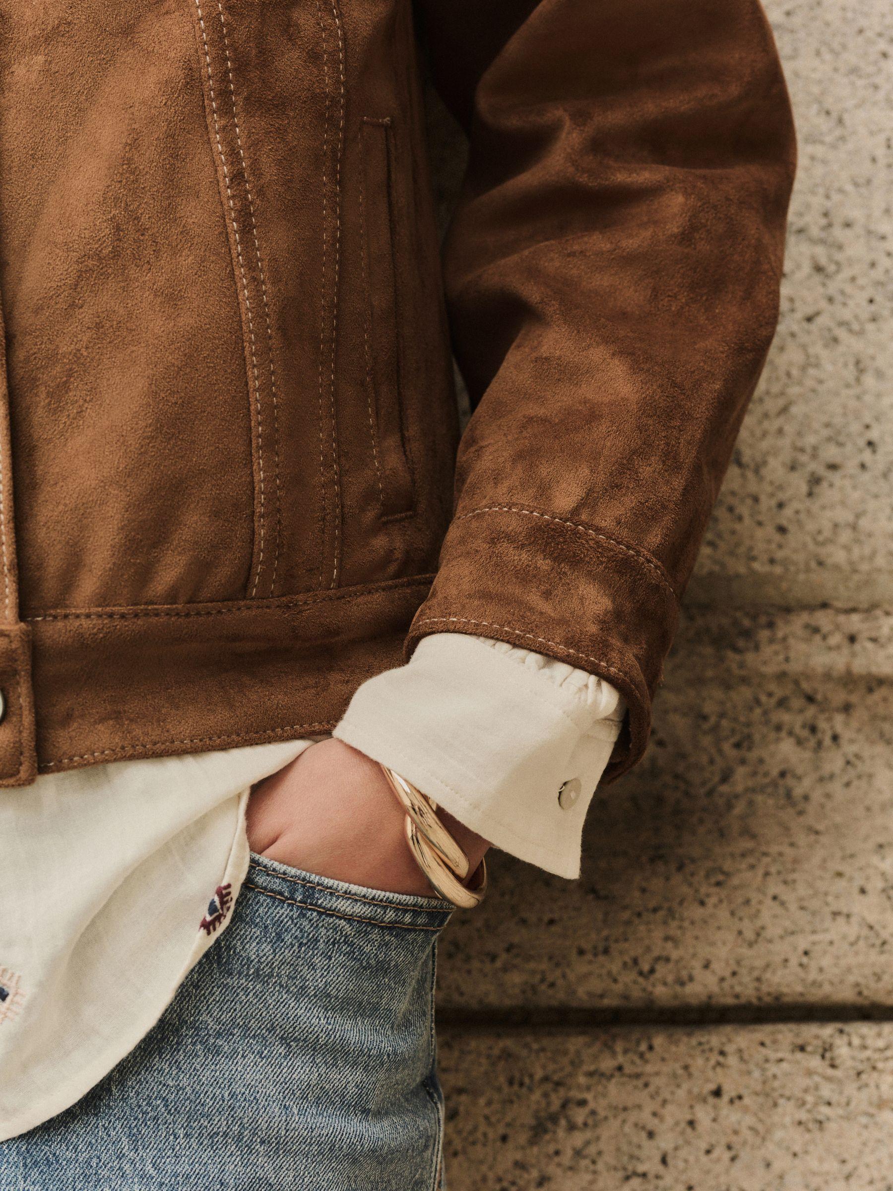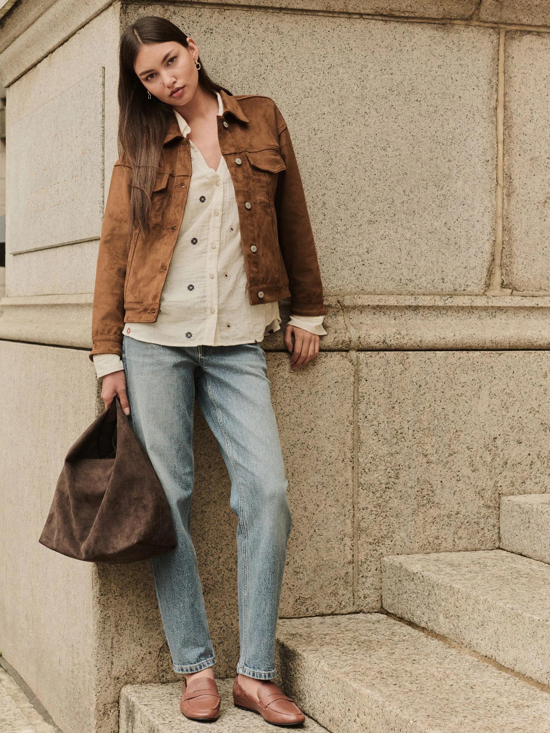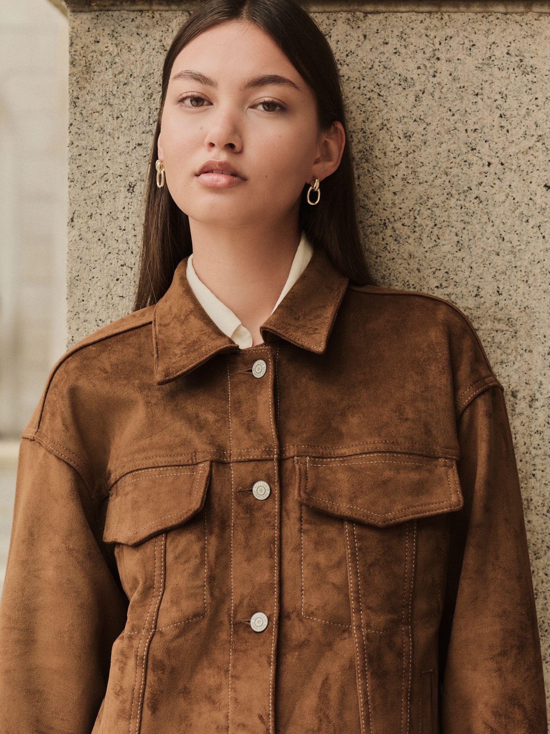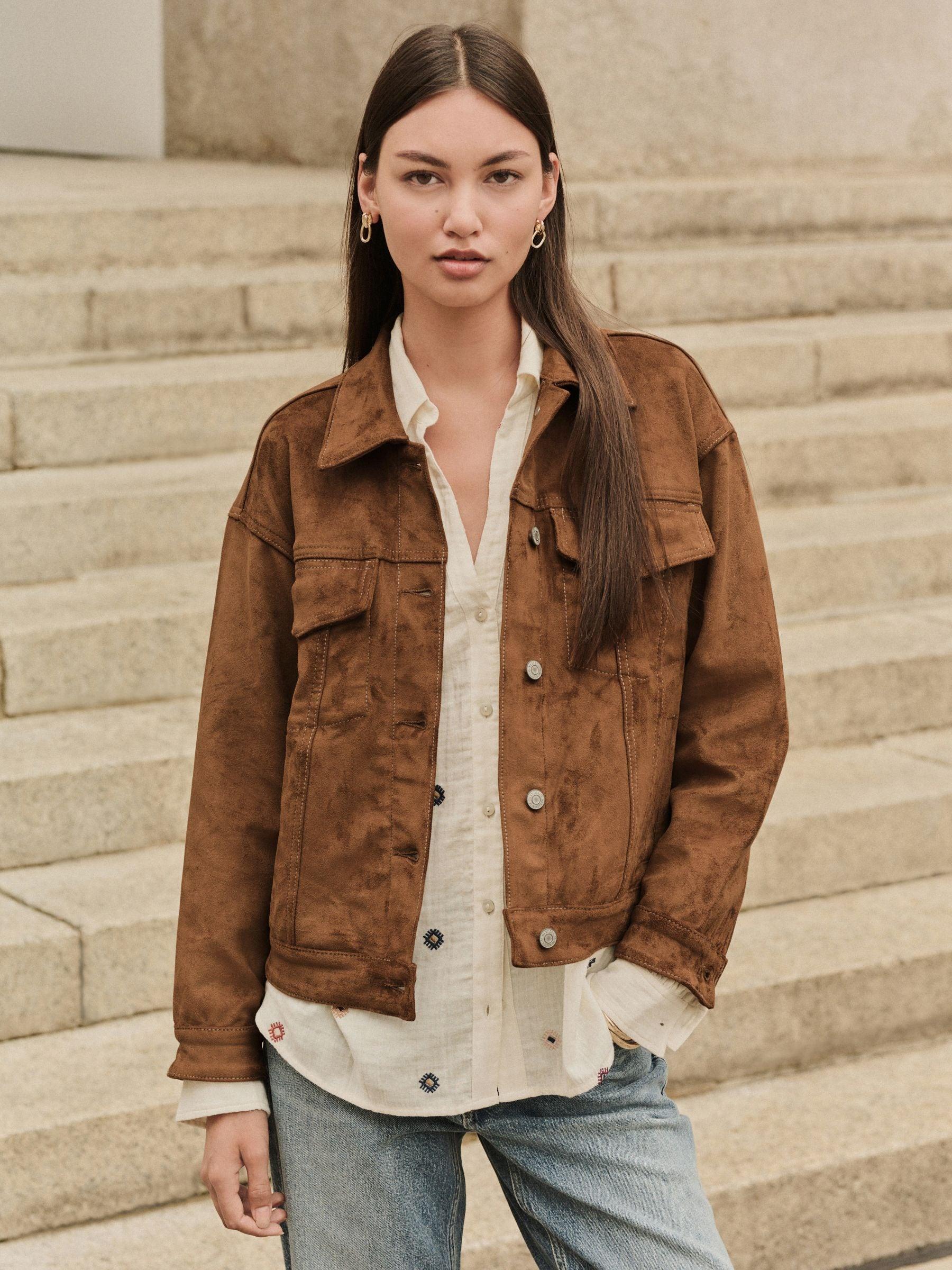 Tan Brown N. Premium Faux Suede Trucker Jacket