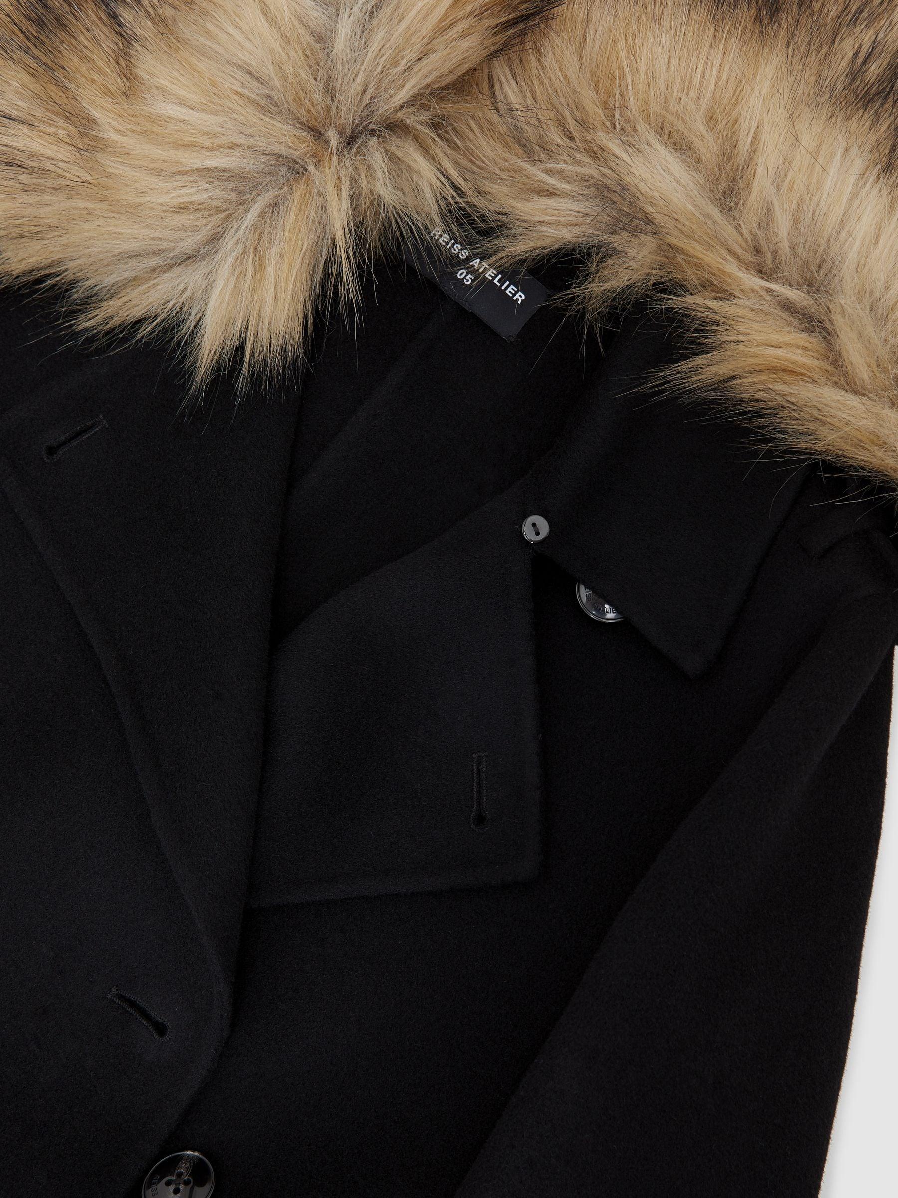 Atelier Black Jolene Atelier Wool Faux-Fur Collar Coat